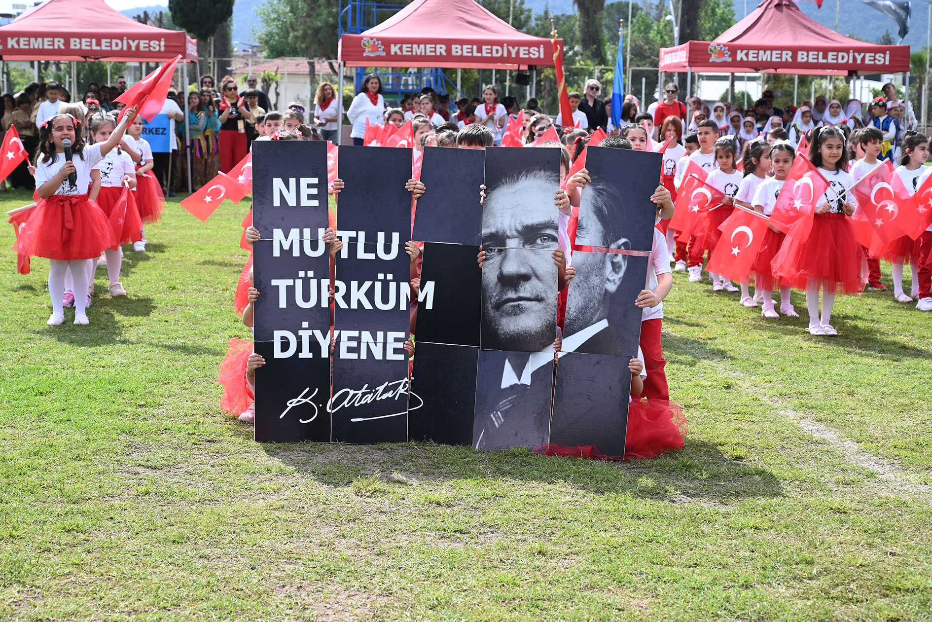 23 Nisan Ulusal Egemenlik ve Çocuk Bayramı ile Türkiye Büyük Millet Meclisi'nin 106. kuruluş yıl dönümü, Kemer'de düzenlenen tören ve etkinliklerle coşkuyla kutlandı.