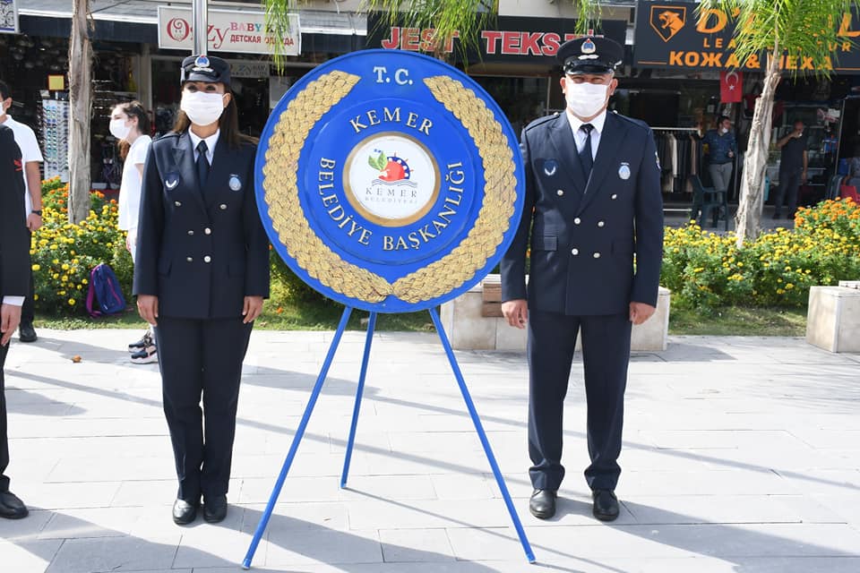 Kemer Cumhuriyet Meydanında düzenlenen törene, Kemer Kaymakamı Murtaza Dayanç, Kemer Cumhuriyet Başsavcısı İsmail Teker, Kemer Belediye Başkanı Necati Topaloğlu, Kemer Jandarma Komutanı Yüzbaşı Ramazan Ergel, İlçe Emniyet Müdürü Deniz Yılmaz, Kemer Sahil Güvenlik Komutanı Ulvi Gören, belediye meclis üyeleri, siyasi parti temsilcileri ve vatandaşlar katıldı.