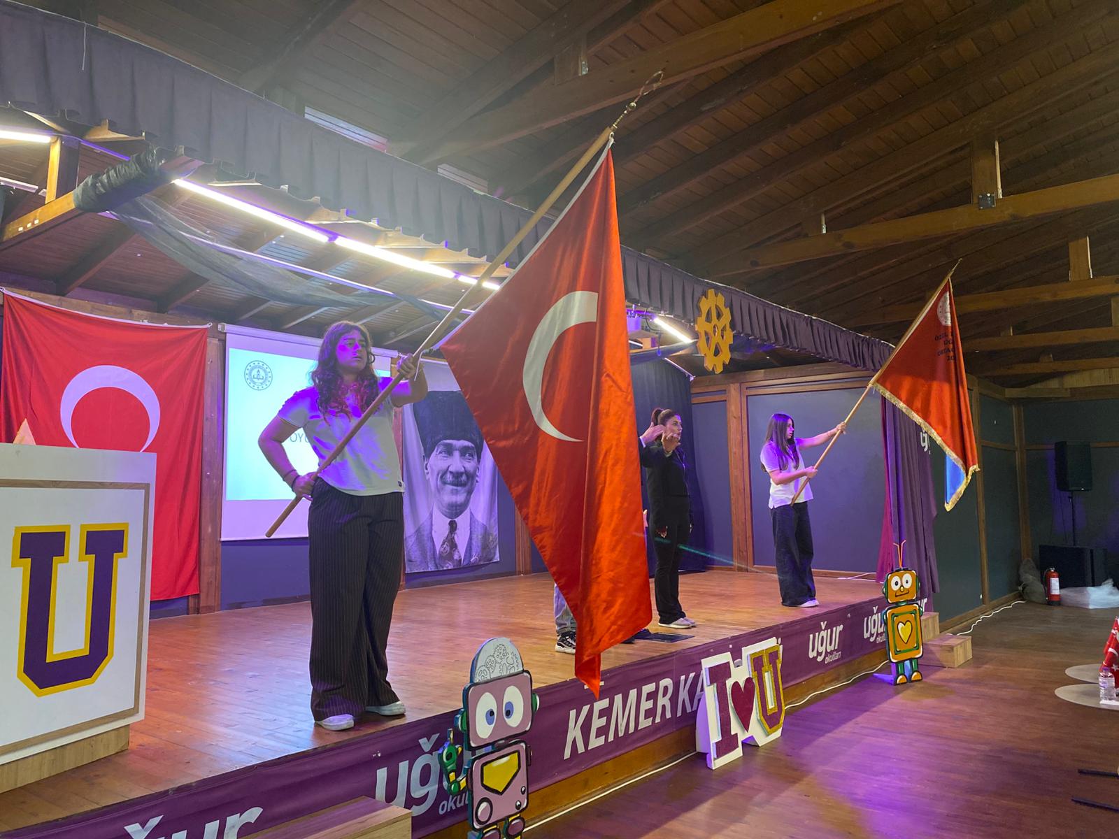 Kemer'deki ilk ve ortaokul öğrencilerinin katıldığı turnuva, saygı duruşunda bulunulmasının ardından İstiklal Marşı'nın okunmasıyla başladı.
