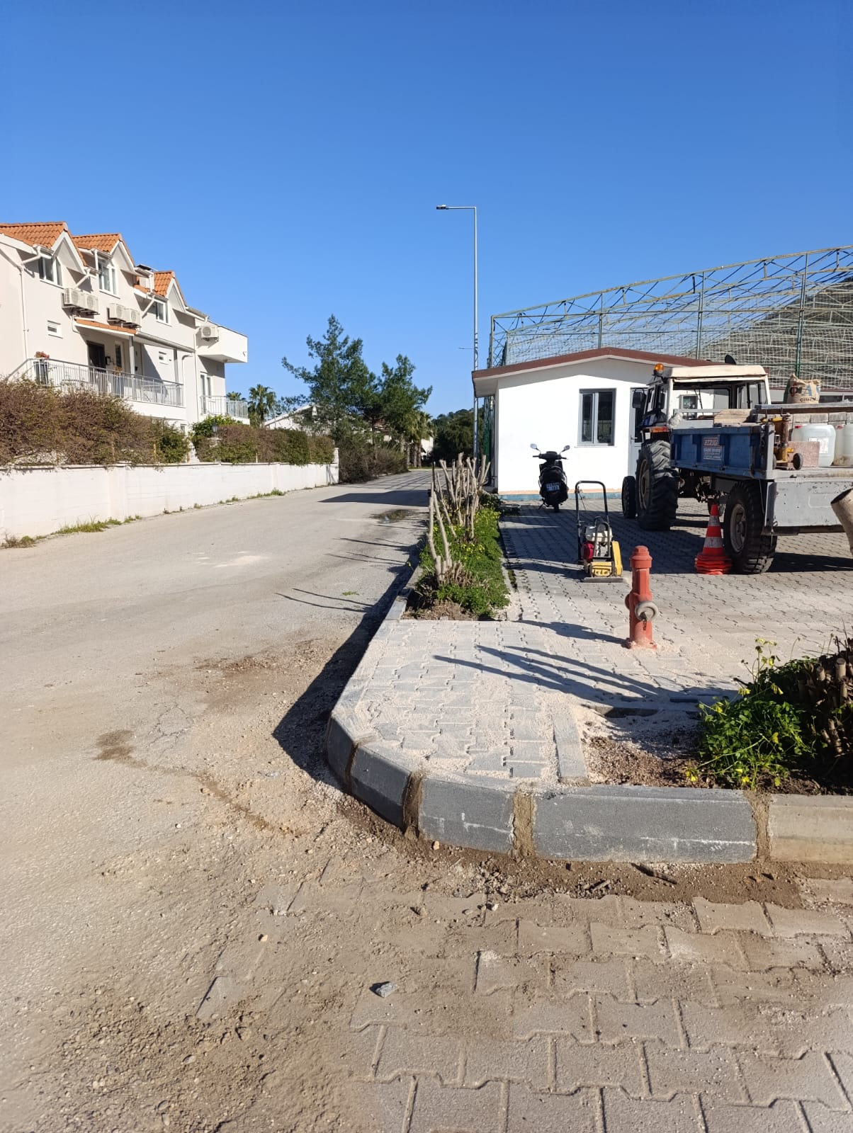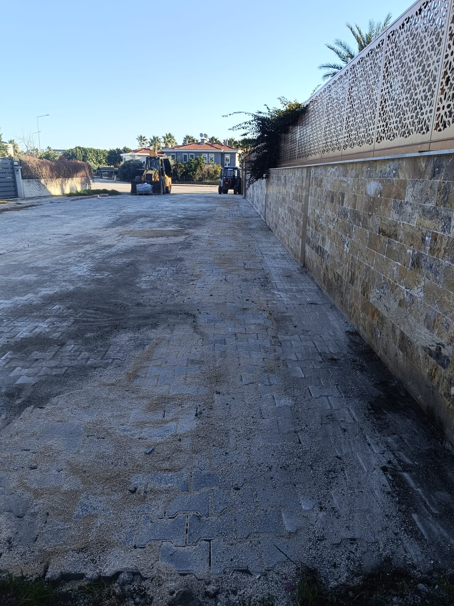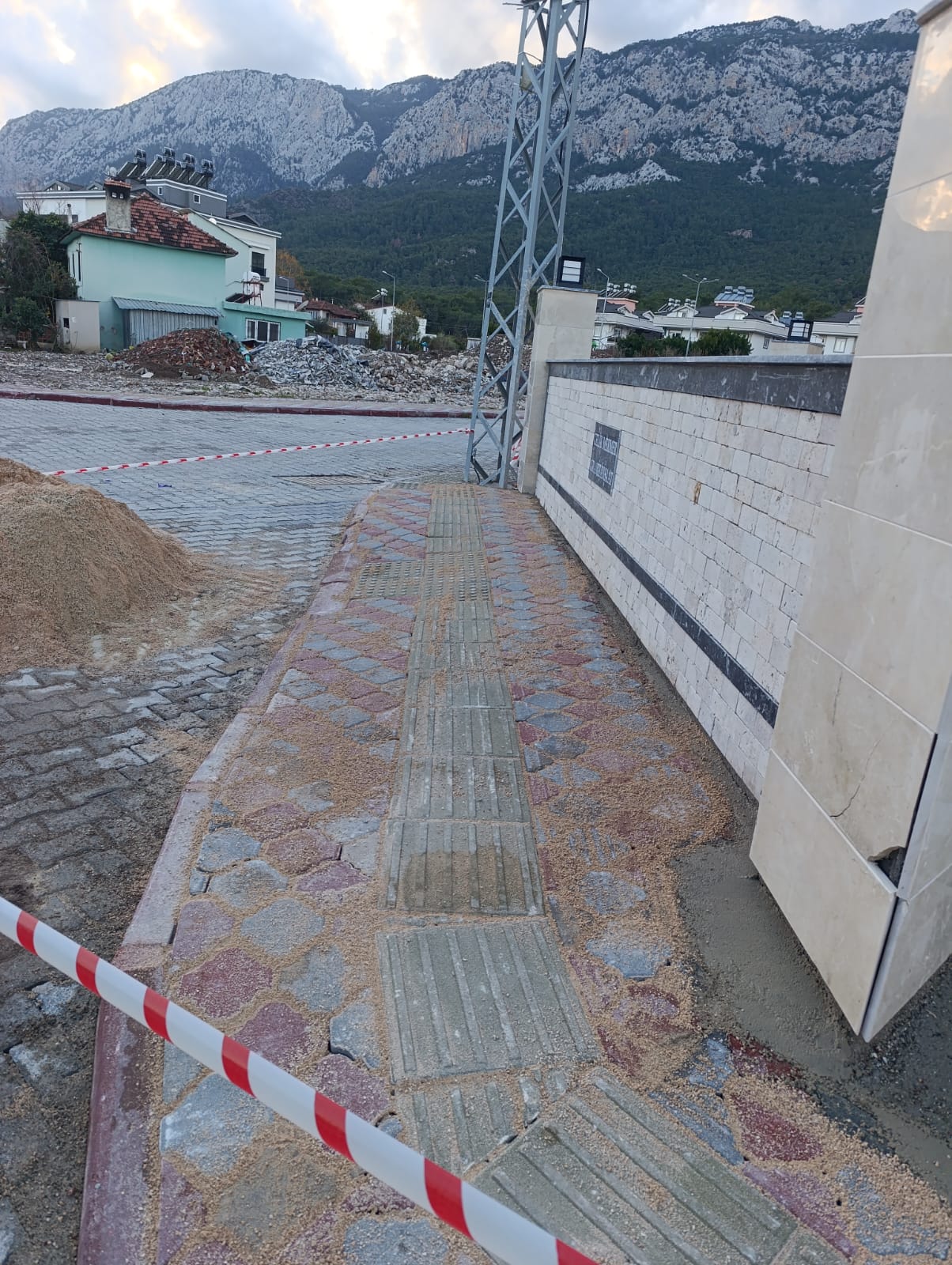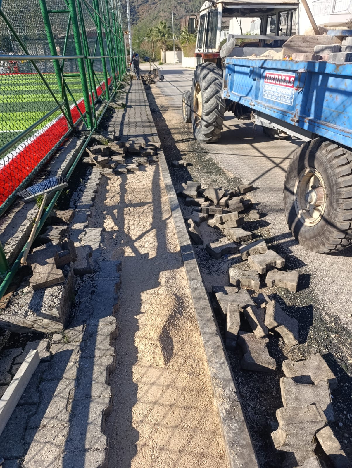 Tekirova Mahallesi'nde imara yeni açılan bölgede altyapı çalışmalarının yapılabilmesi için stabilize yollar açmaya devam eden belediye ekipleri, Kuzdere Mahallesi Ballıtaş Caddesi 24. Sokak'taki bozulan kaldırımların onarım çalışmalarını tamamladı.