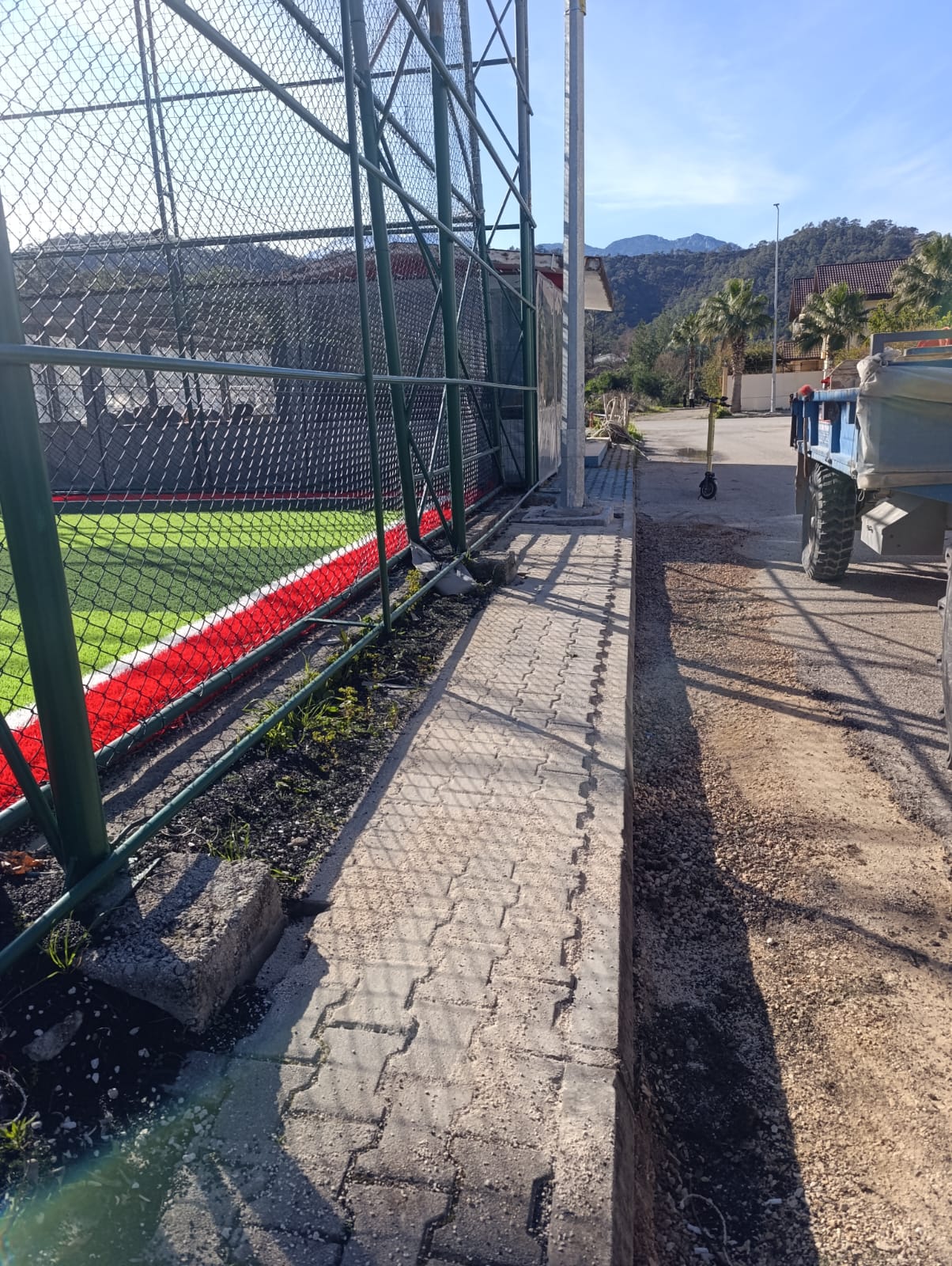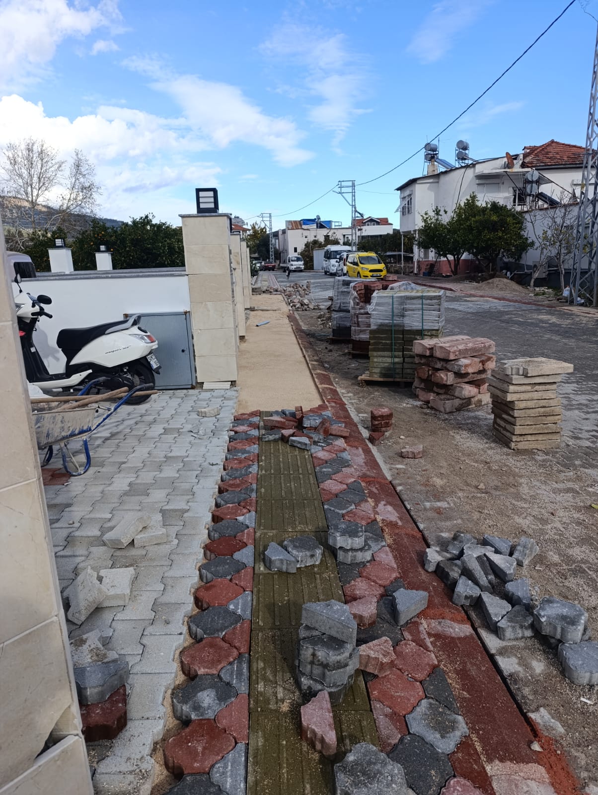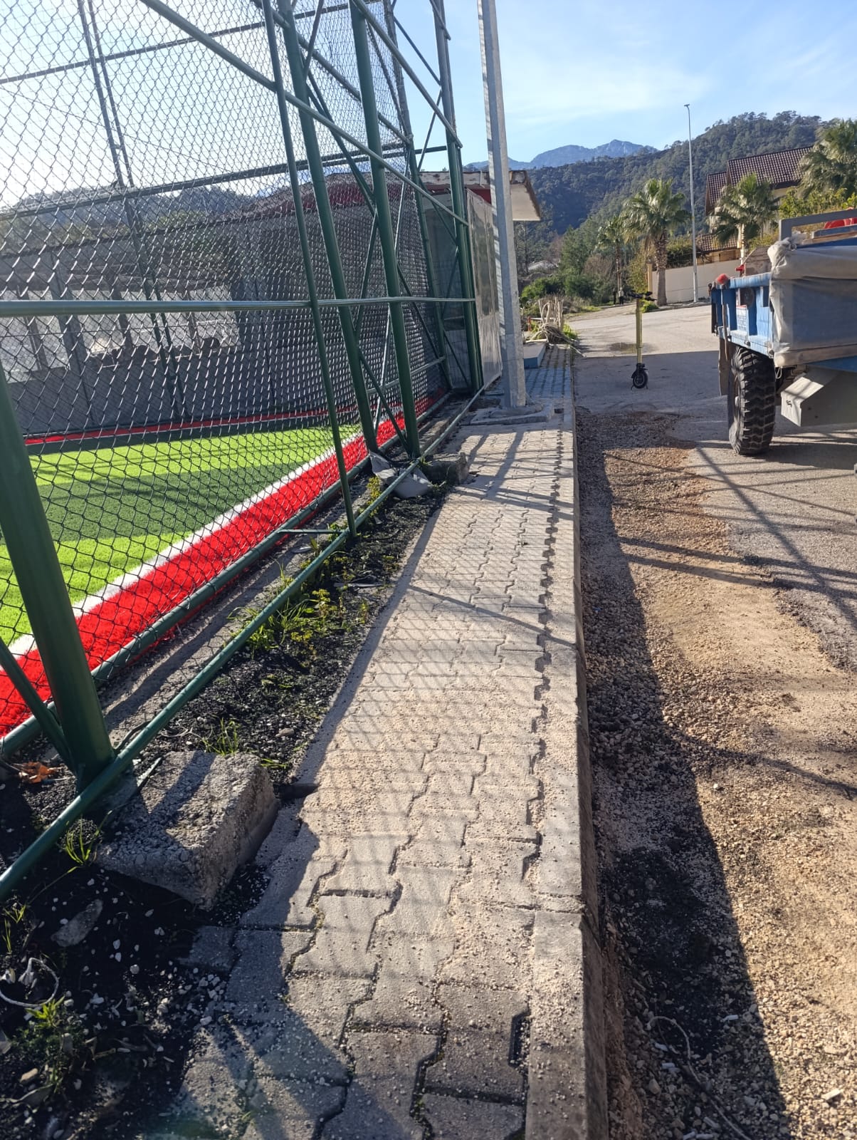 Tekirova Mahallesi'nde imara yeni açılan bölgede altyapı çalışmalarının yapılabilmesi için stabilize yollar açmaya devam eden belediye ekipleri, Kuzdere Mahallesi Ballıtaş Caddesi 24. Sokak'taki bozulan kaldırımların onarım çalışmalarını tamamladı.