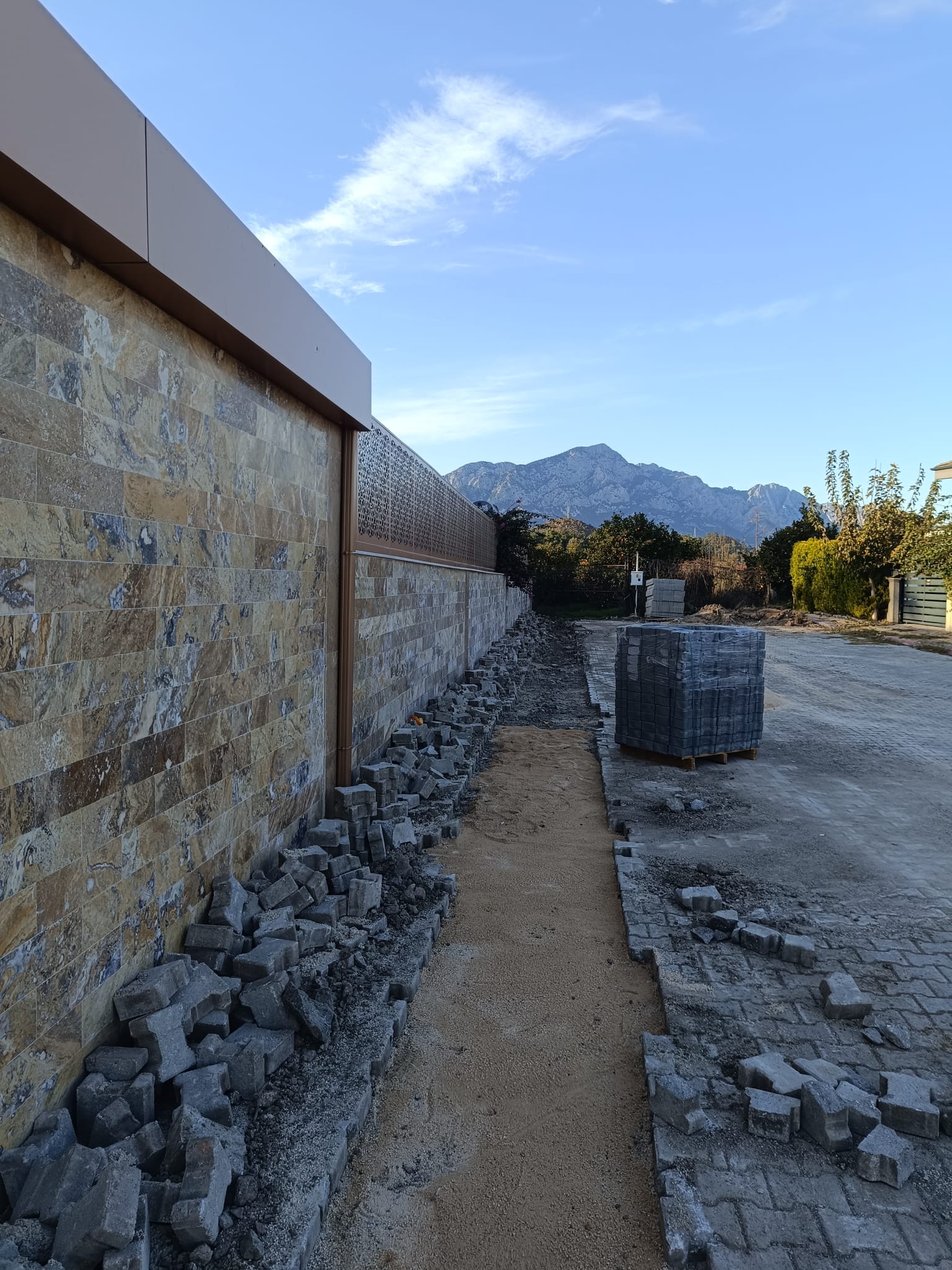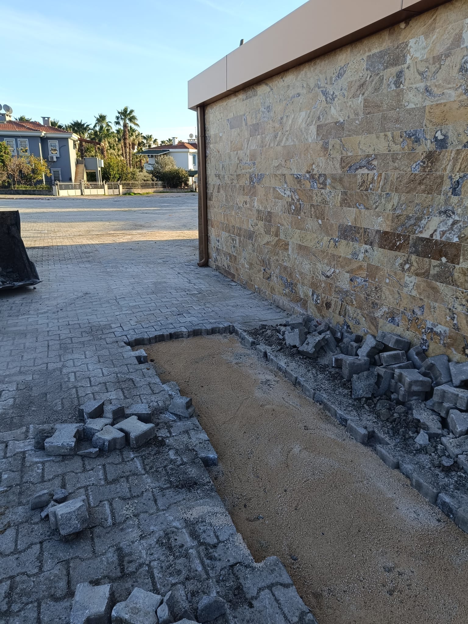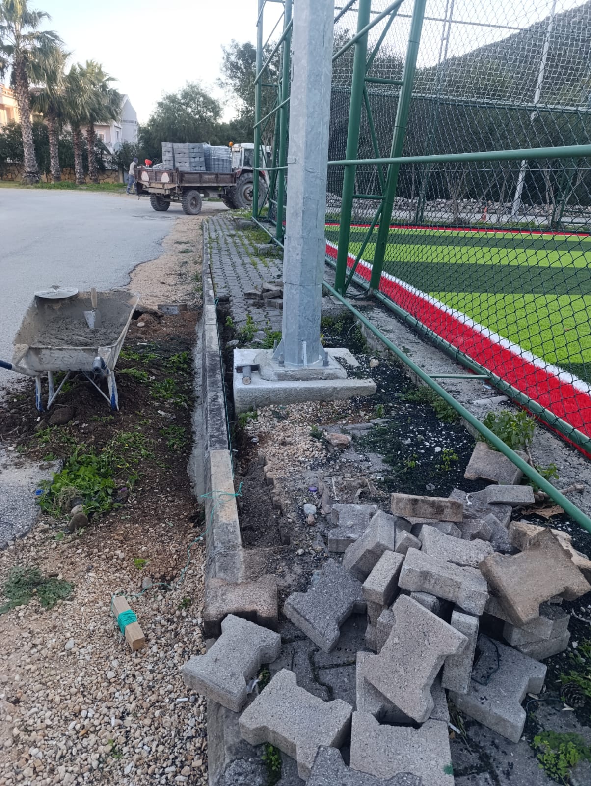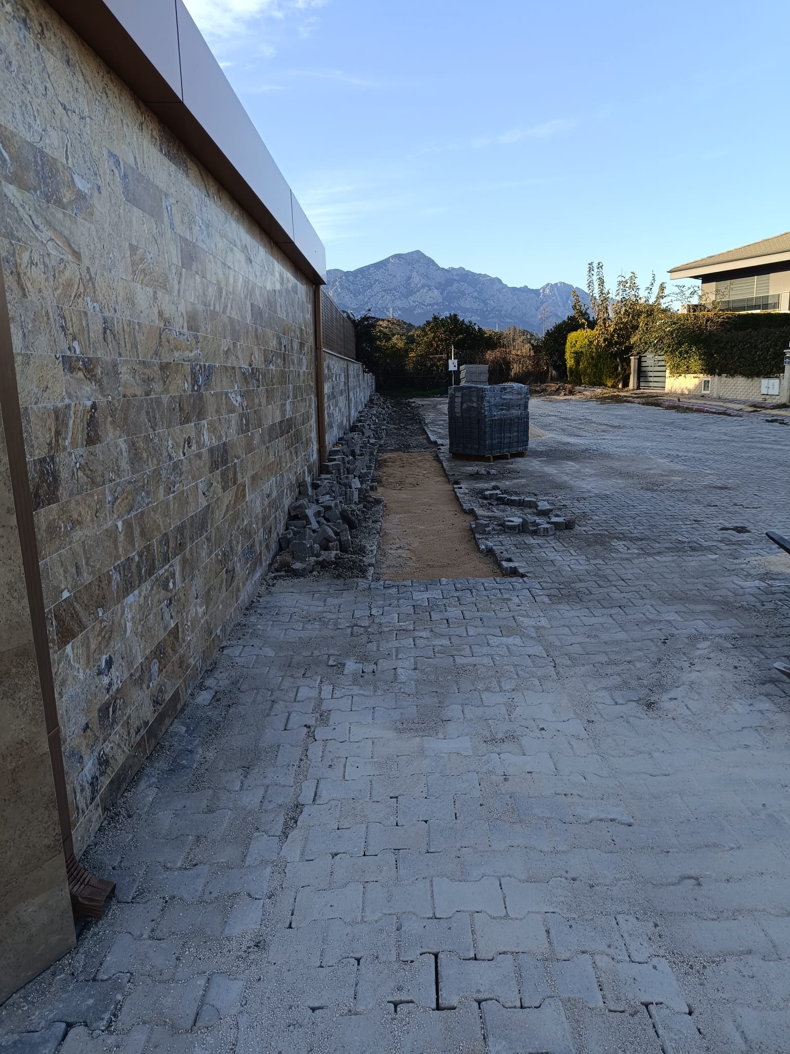 Tekirova Mahallesi'nde imara yeni açılan bölgede altyapı çalışmalarının yapılabilmesi için stabilize yollar açmaya devam eden belediye ekipleri, Kuzdere Mahallesi Ballıtaş Caddesi 24. Sokak'taki bozulan kaldırımların onarım çalışmalarını tamamladı.