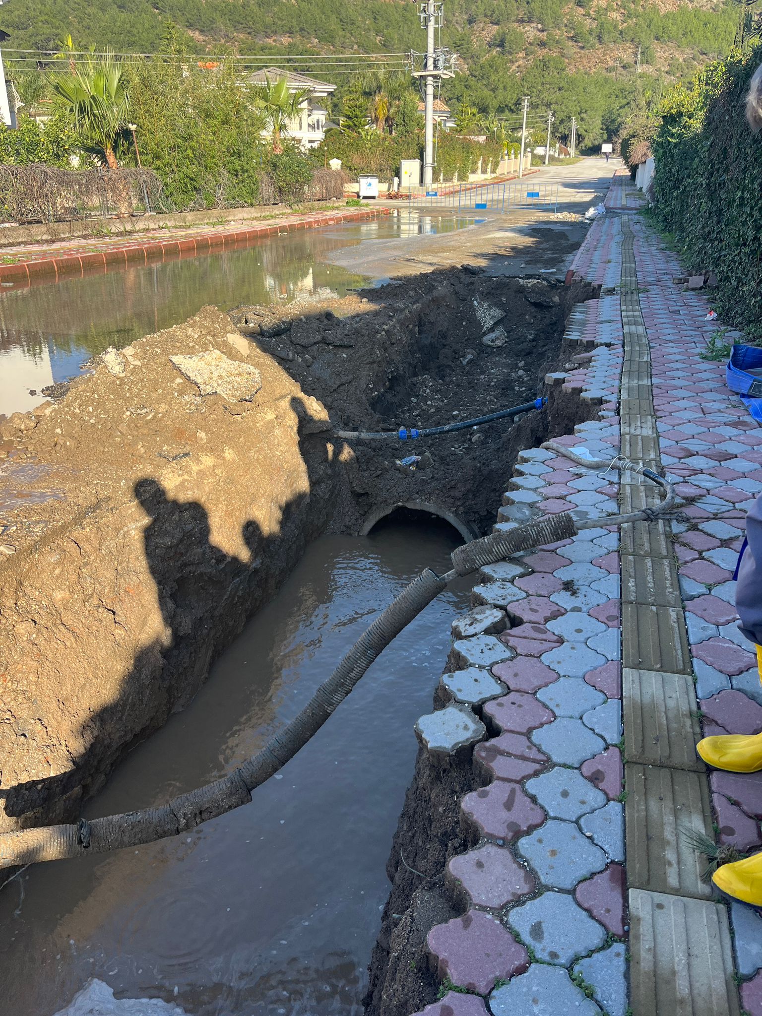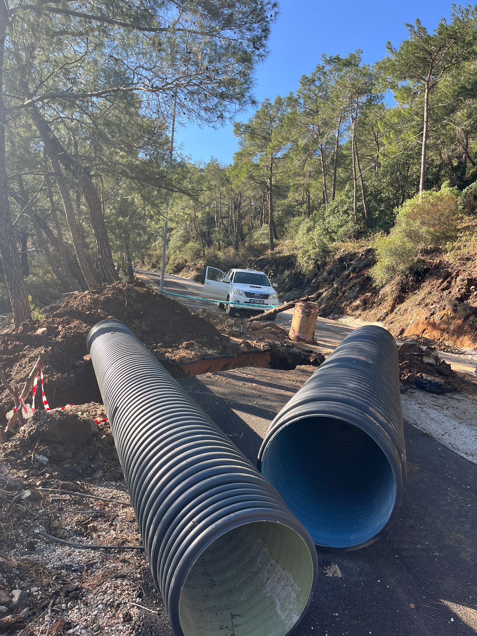 Kiriş Mahallesi Adile Naşit Caddesi'nde dağdan gelen malzemeler nedeniyle dolan yaklaşık 60 metre uzunluğundaki 1000'lik büzü de yenileme çalışmalarına başlayan belediye ekipleri, Kiriş Dağ Yolunda üç ayrı noktada tıkanan ve göçen yerlere 800'lük boru ile toplama yeri ve drenaj hattı çalışmaları yapıyor.