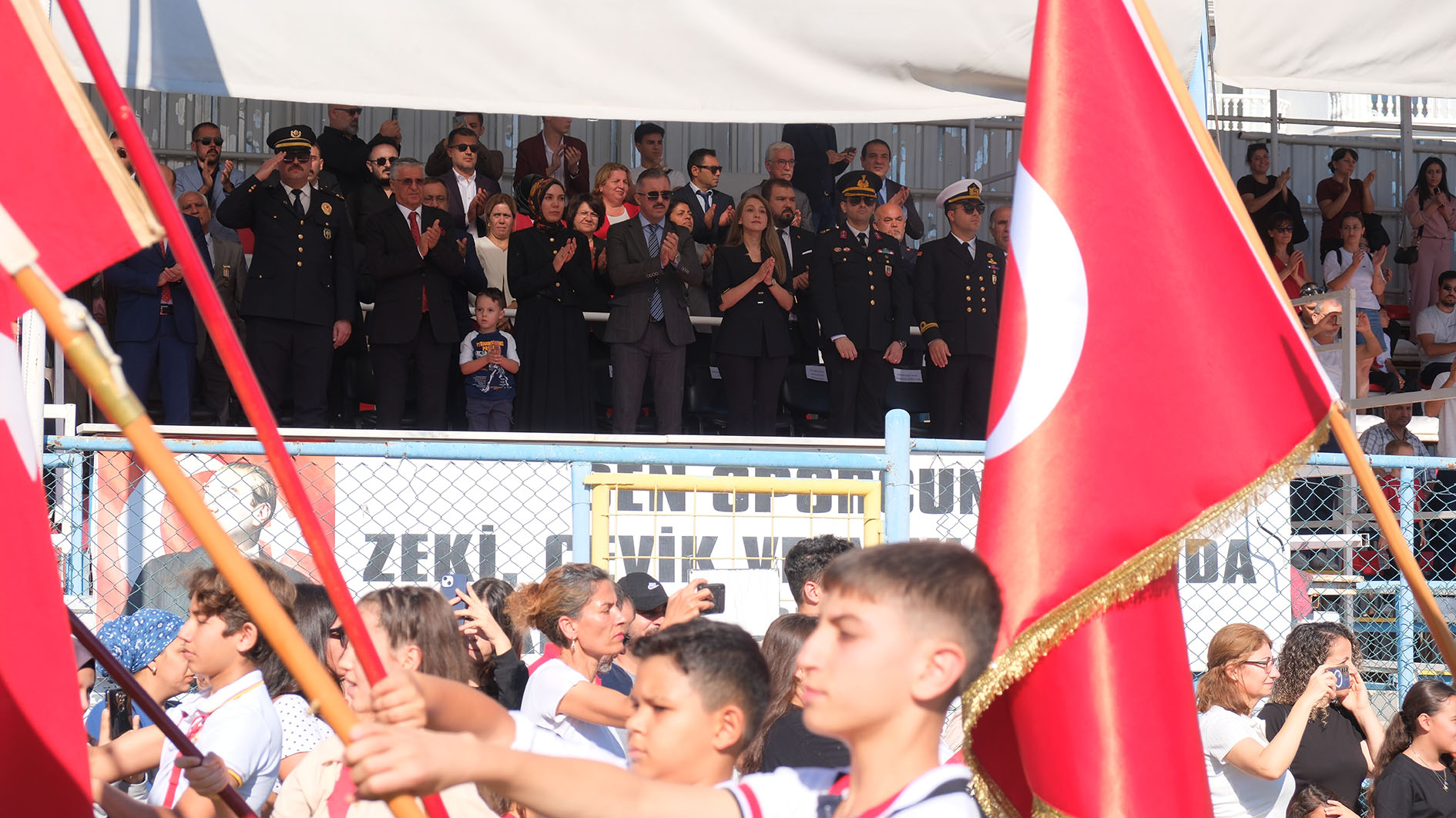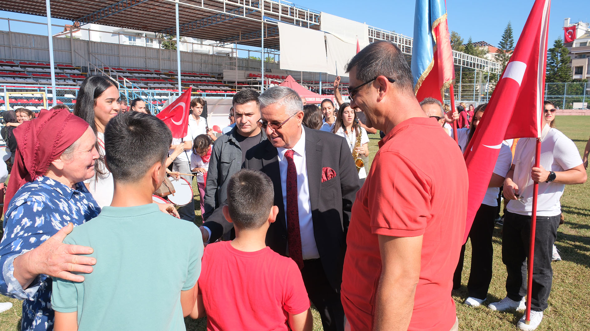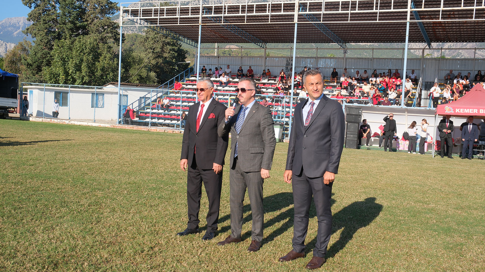 Program, Kemer İlçe Stadı'nda düzenlenen etkinliklerle devam etti. Etkinliklere, Kemer Kaymakamı Ahmet Solmaz, Kemer Belediye Başkanı Necati Topaloğlu, Kemer Cumhuriyet Başsavcısı Gamze Almalı, Kemer Jandarma Komutanı Ömer Seyhan, Kemer Emniyet Müdürü Cengiz Usta, Kemer Sahil Güvenlik Komutanı Burak Gökçe Gökmen, Kemer Belediye Başkan Yardımcısı Mehmet Derya Baytekin, Kemer Belediye Meclis Üyeleri Mustafa Bilici, Ali Akar, Cansın Efir, muhtarlar, Kemer İlçe Milli Eğitim Müdürü Mehmet Erkan Ergen, siyasi parti temsilcileri, kamu kurum ve kuruluşlarının temsilcileri, gaziler ve şehit yakınları, öğretmen ve öğrenciler ile vatandaşlar katıldı.