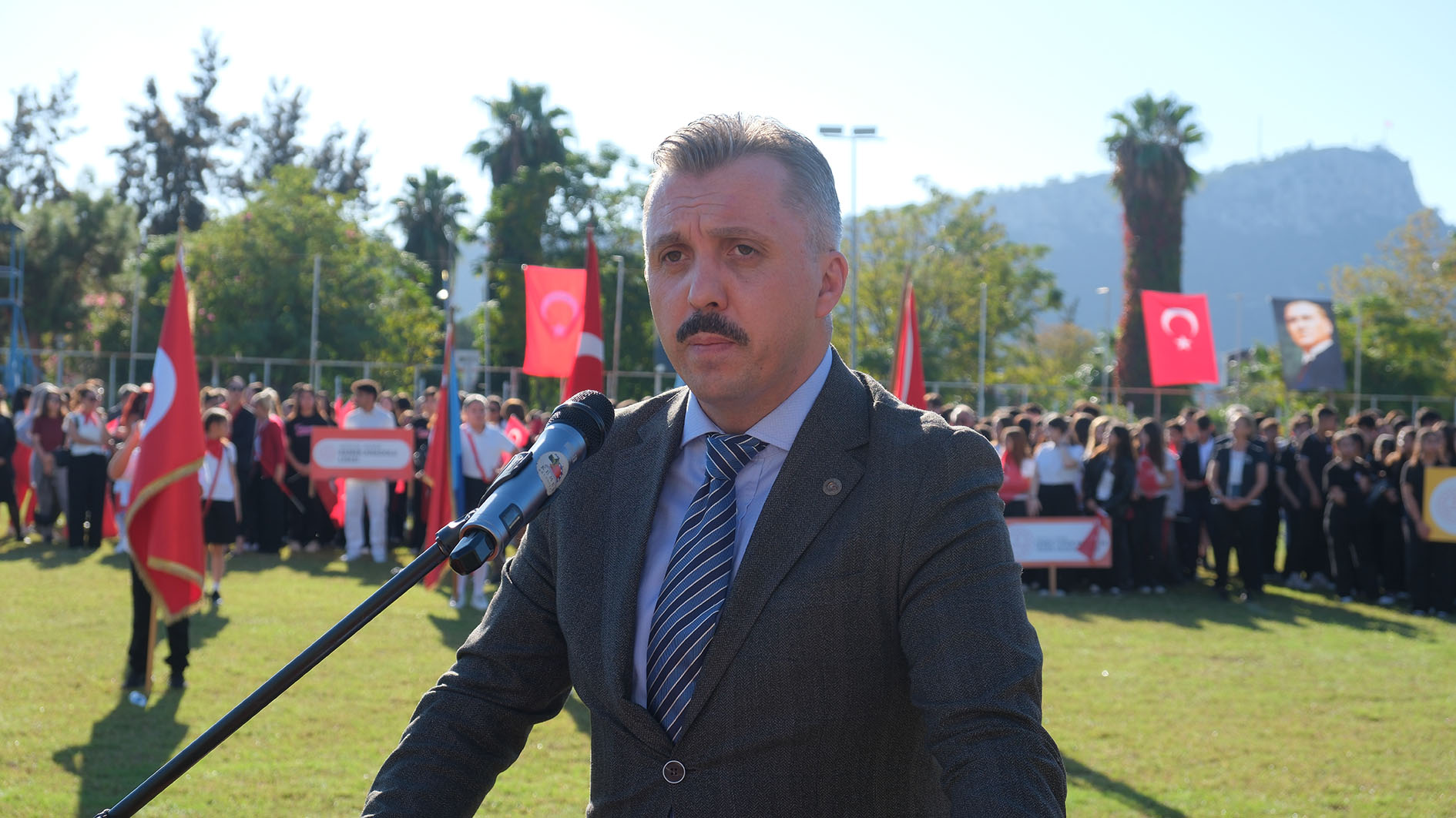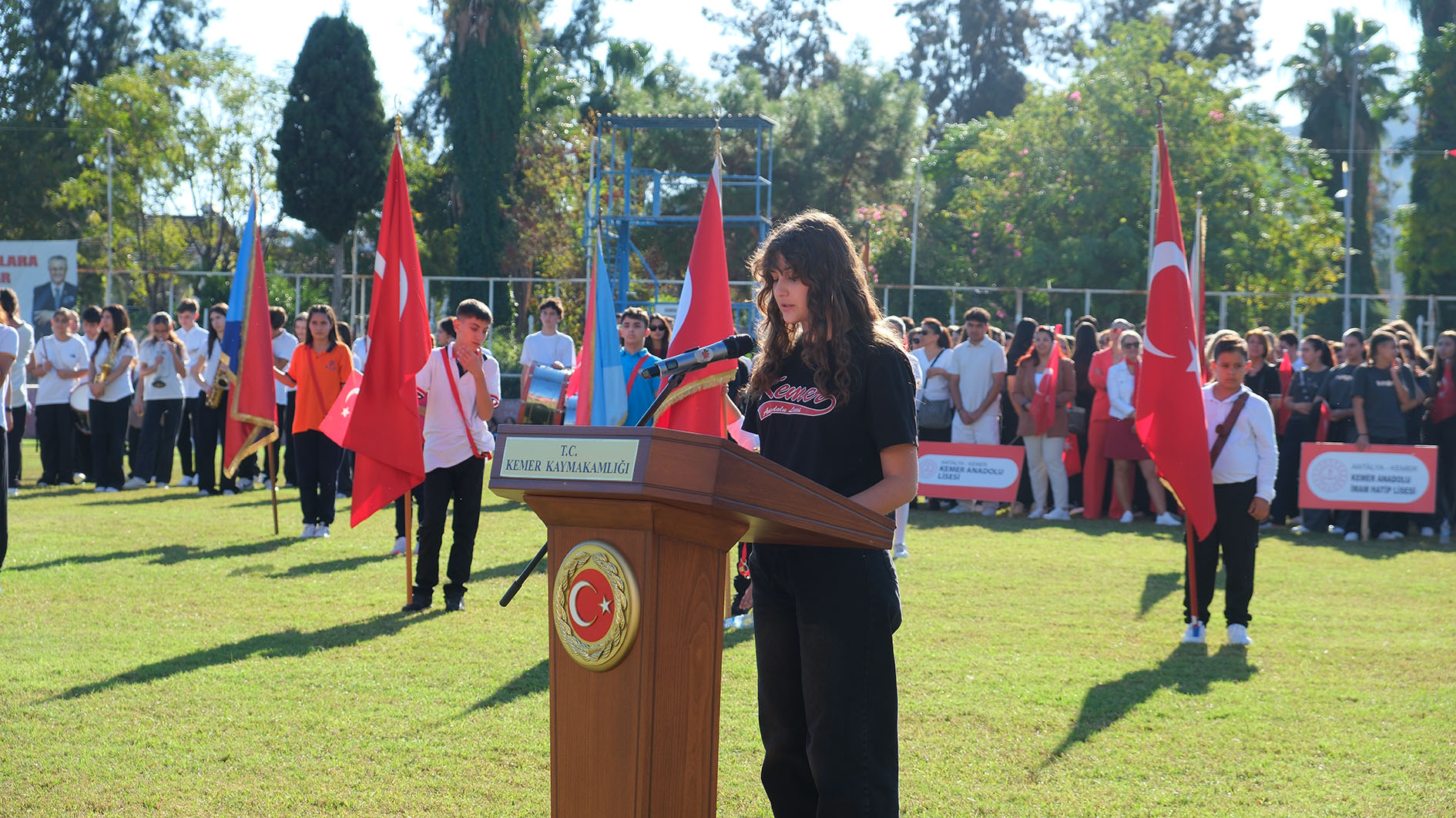 Saygı duruşunda bulunulmasının ardından İstiklal Marşı'nın okunmasıyla devam eden programda Kemer Anadolu Lisesi öğrencilerinden Yusuf Gençay, Atatürk'ün Gençliğe Hitabesini okudu.