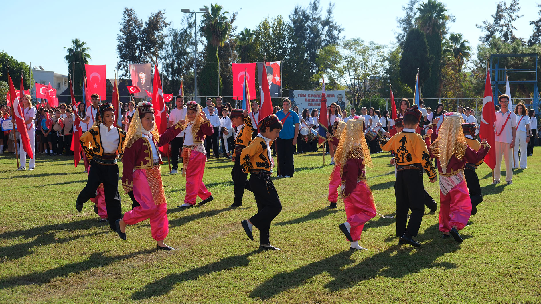 Programda, öğrenciler, Cumhuriyet konulu şiirler okuyup çeşitli halk oyunları gösterileri de sundu.