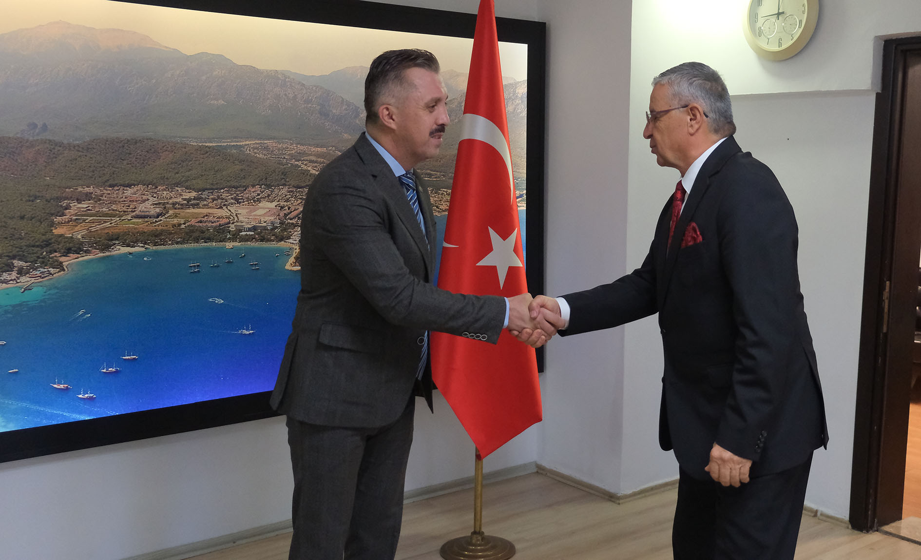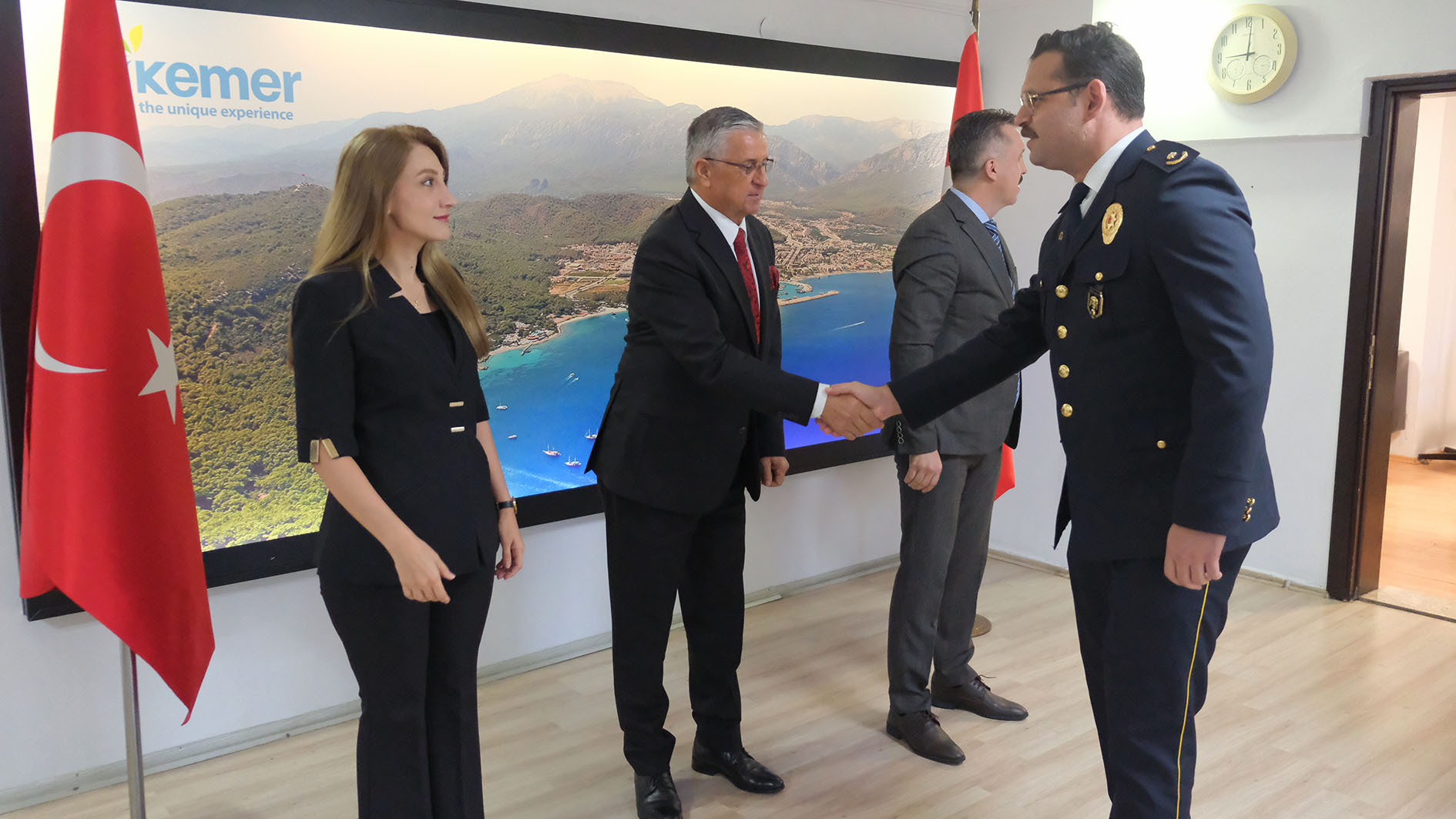 Kutlamalar, Kemer Kaymakamı Ahmet Solmaz'ın Kemer Kaymakamlık makamında tebrikleri kabulü ile başladı.