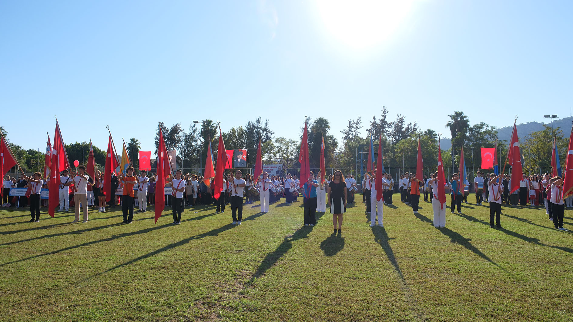 Program, ilçedeki okullarda öğrenim gören öğrencilerin protokol üyelerini bando eşliğinde selamlamasıyla sona erdi.