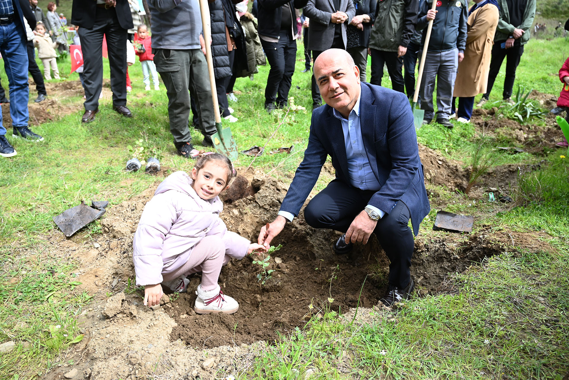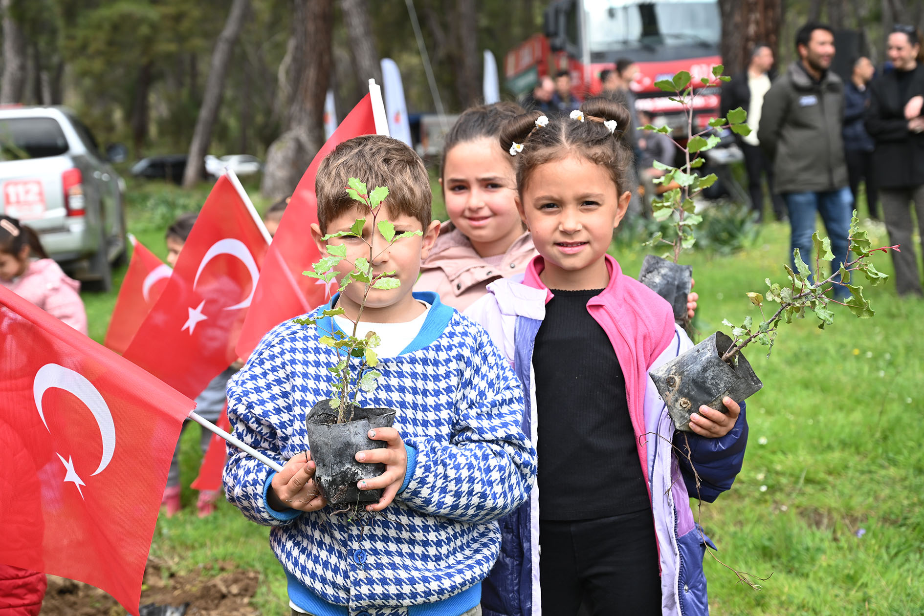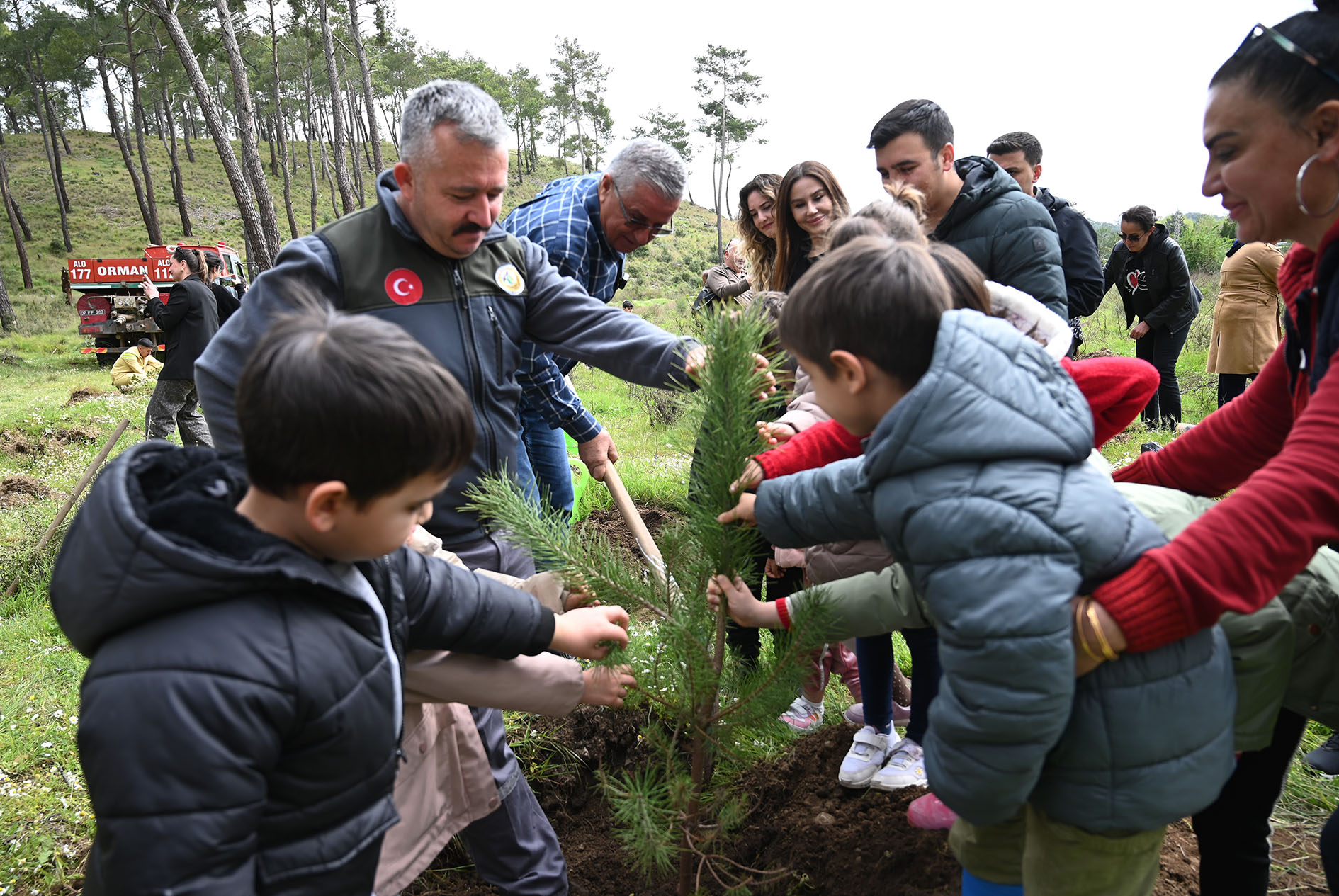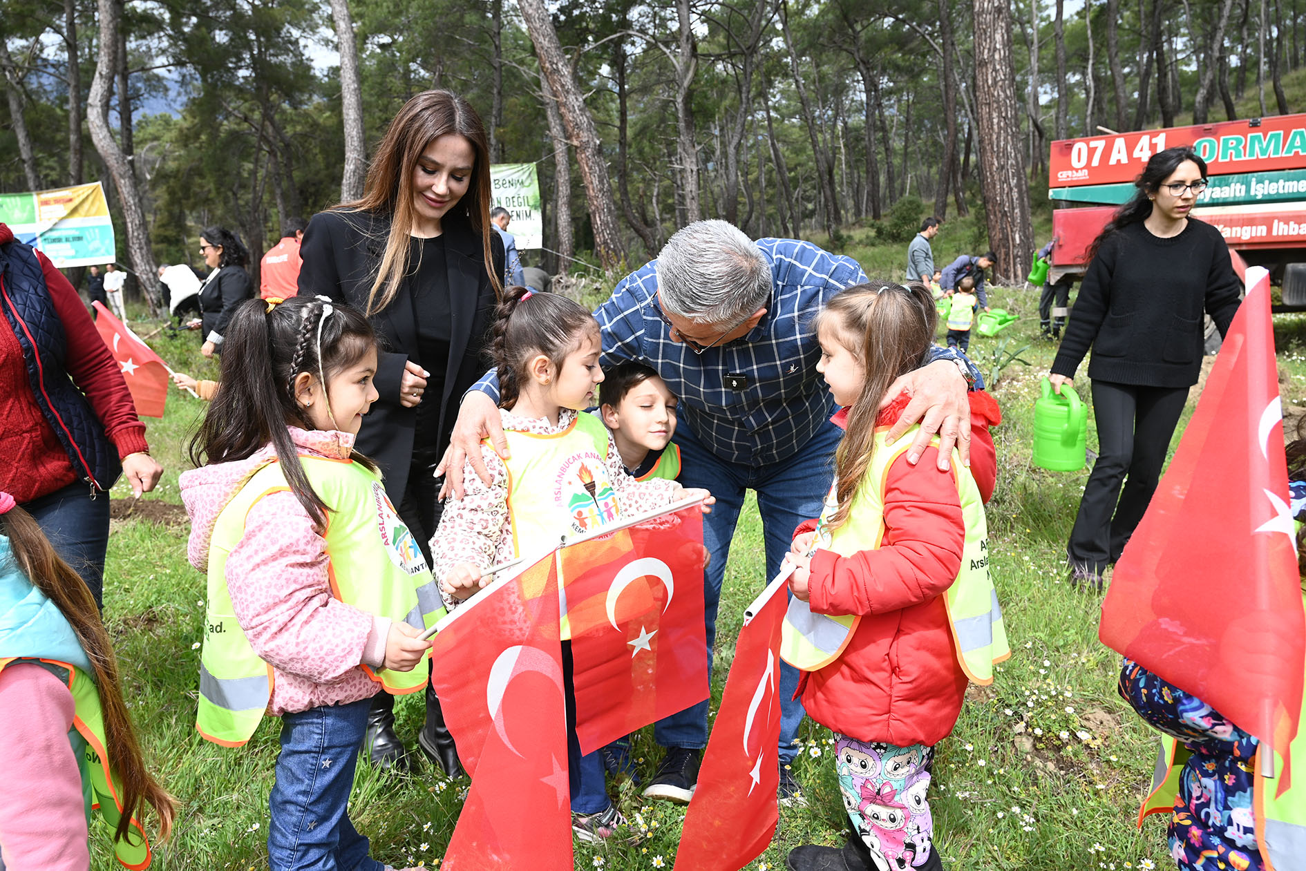 Kemer Belediyesi Ülker-Orduvar Akman Kreş ve Gündüz Bakımevi ile Arslanbucak İlkokulu, Kemer Yıldızlar Gündüz Bakımevi öğrencileri ile selamlaşarak sohbet eden Kaymakam Solmaz, Başkan Topaloğlu ve diğer protokol üyeleri, öğrencilerle birlikte fidanları toprakla buluşturdu ve dikilen fidanlara can suyu döktü.