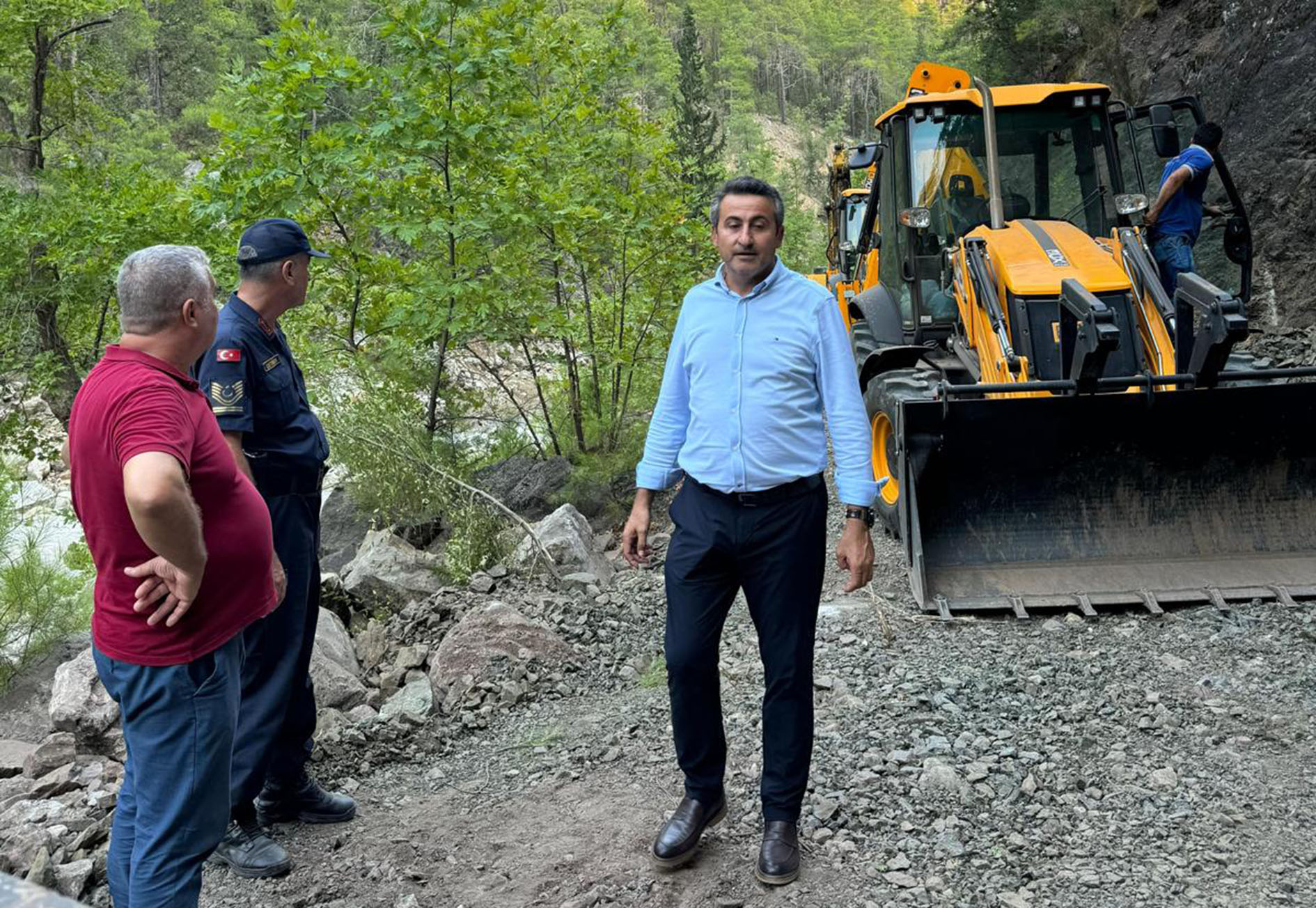 Havadan müdahalenin yapıldığı yangına karadan ulaşım olmadığı için Kemer Belediye ekipleri arazözlerle yol açtı.