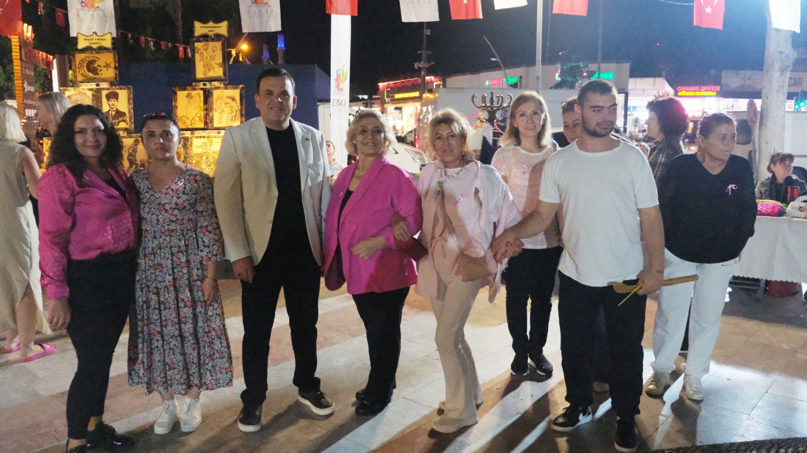 Kemer Belediyesi'nin destekleriyle her ay Atatürk Parkı'nda yapılan üreten ev hanımları buluşması kapsamında meme kanserine dikkat çekmek amacıyla etkinlik düzenlendi.