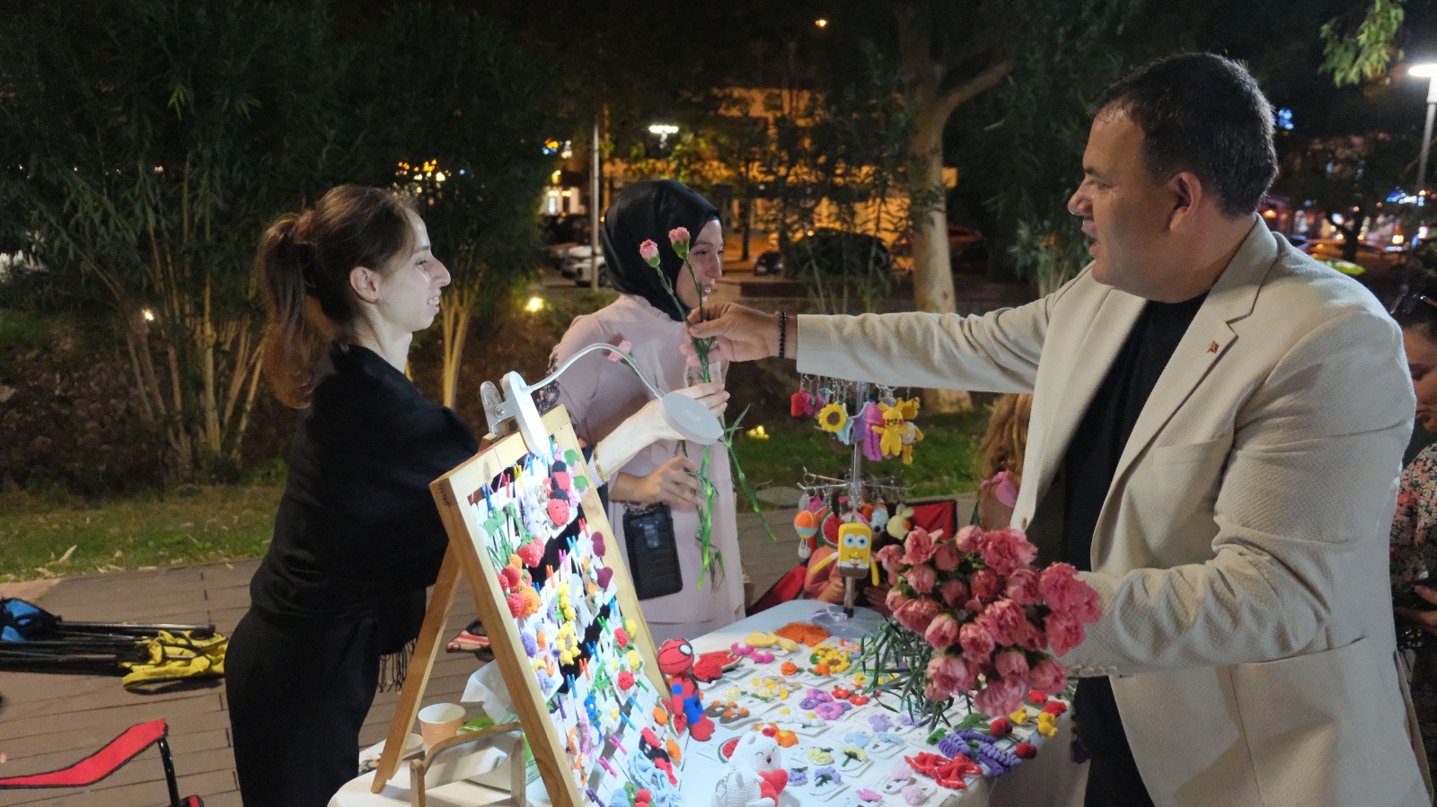 Öte yandan günün önemine istinaden üreten ev hanımları buluşmasının yapıldığı alana gelenlere ve ev hanımlarına pembe karanfil dağıtıldı.