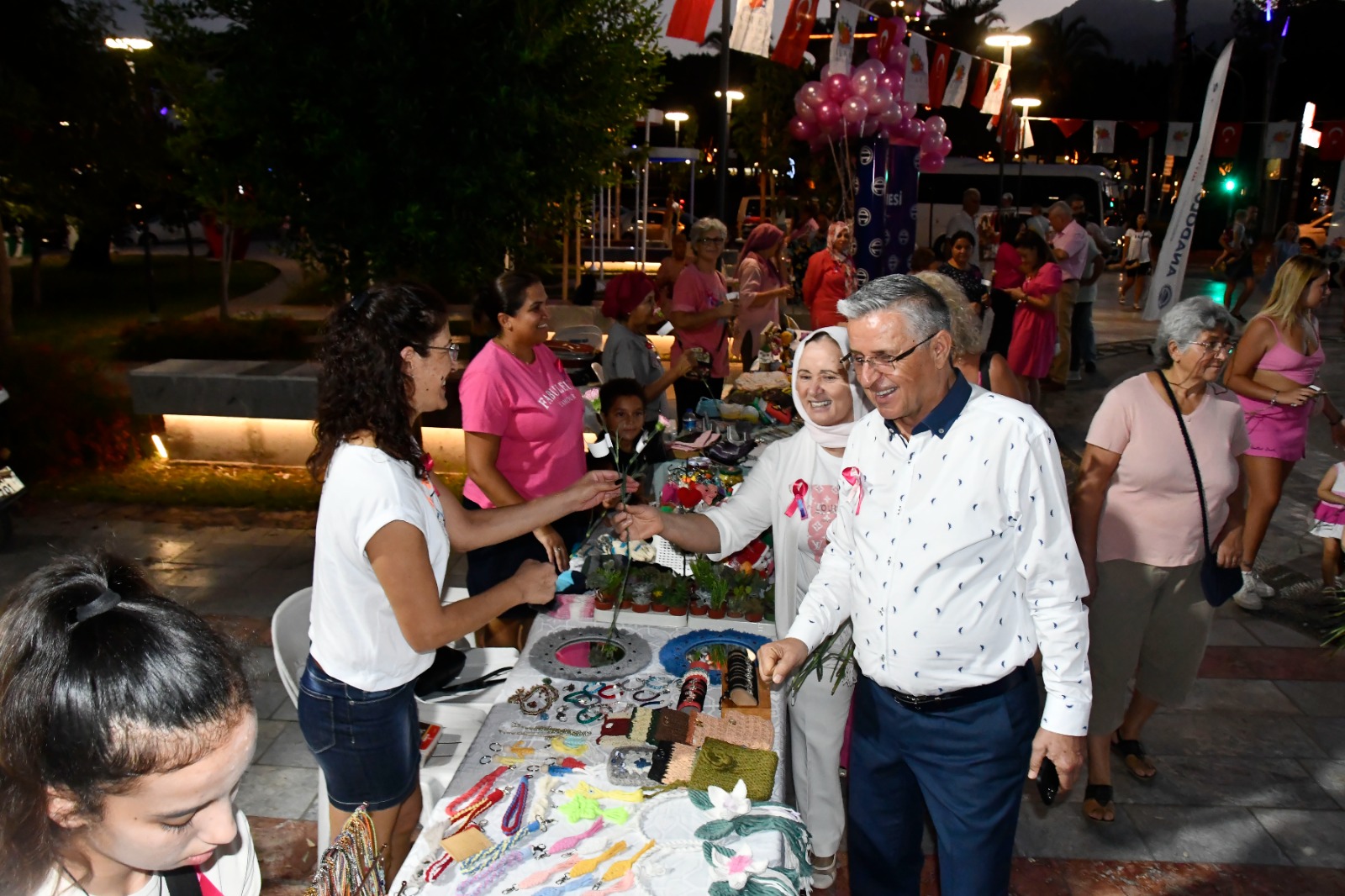 Kemer Belediyesi'nin destekleriyle her ay Atatürk Parkı'nda yapılan üreten ev hanımları buluşması kapsamında meme kanserine dikkat çekmek amacıyla etkinlik düzenlendi.
