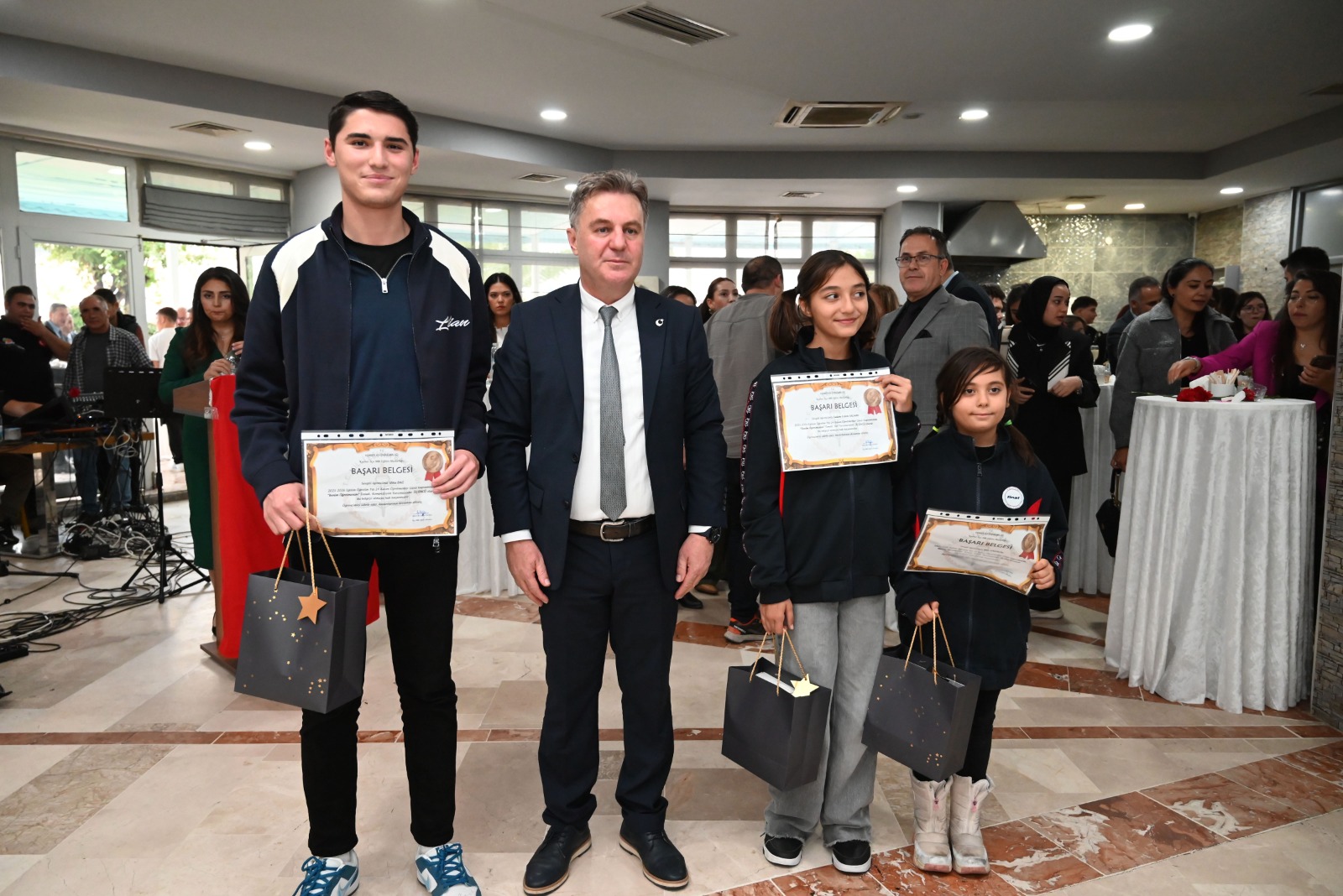 Öğrencilerin ödüllerini, Kaymakamı Solmaz, Başkan Topaloğlu ve İlçe Milli Eğitim Müdürü Ergen verdi.