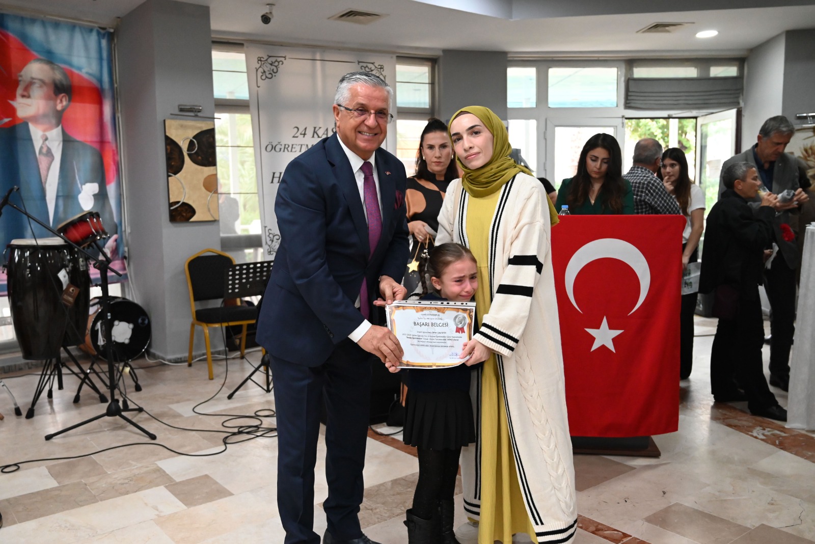 Programda, ilçe genelinde ‘Benim Öğretmenim' temalı şiir, resim ve kompozisyon konulu yarışmalarda dereceye giren öğrencilere ödülleri verildi.