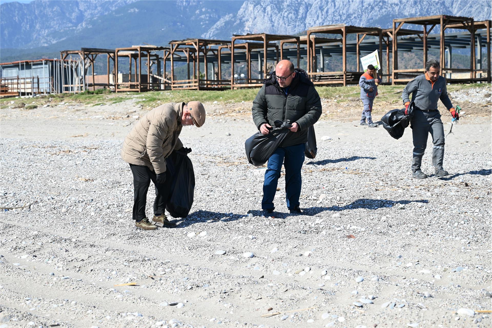 Sahilde toplanan plastik, cam, metal, kağıt, karton, sigara izmariti ve diğer atıklar daha sonra imha edilmek üzere belediye ekipleri tarafından alındı.