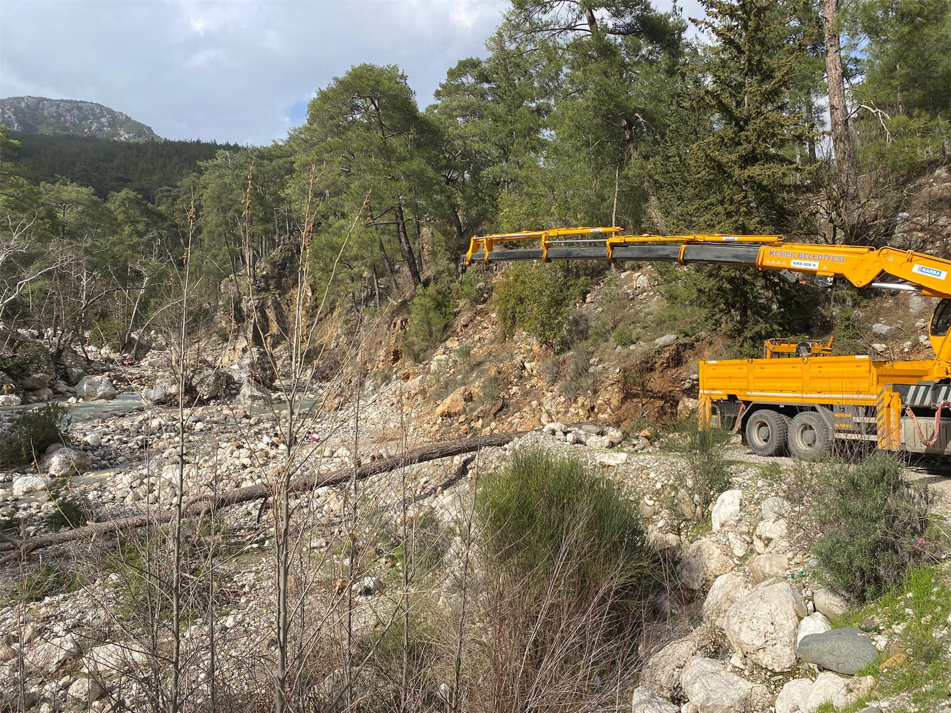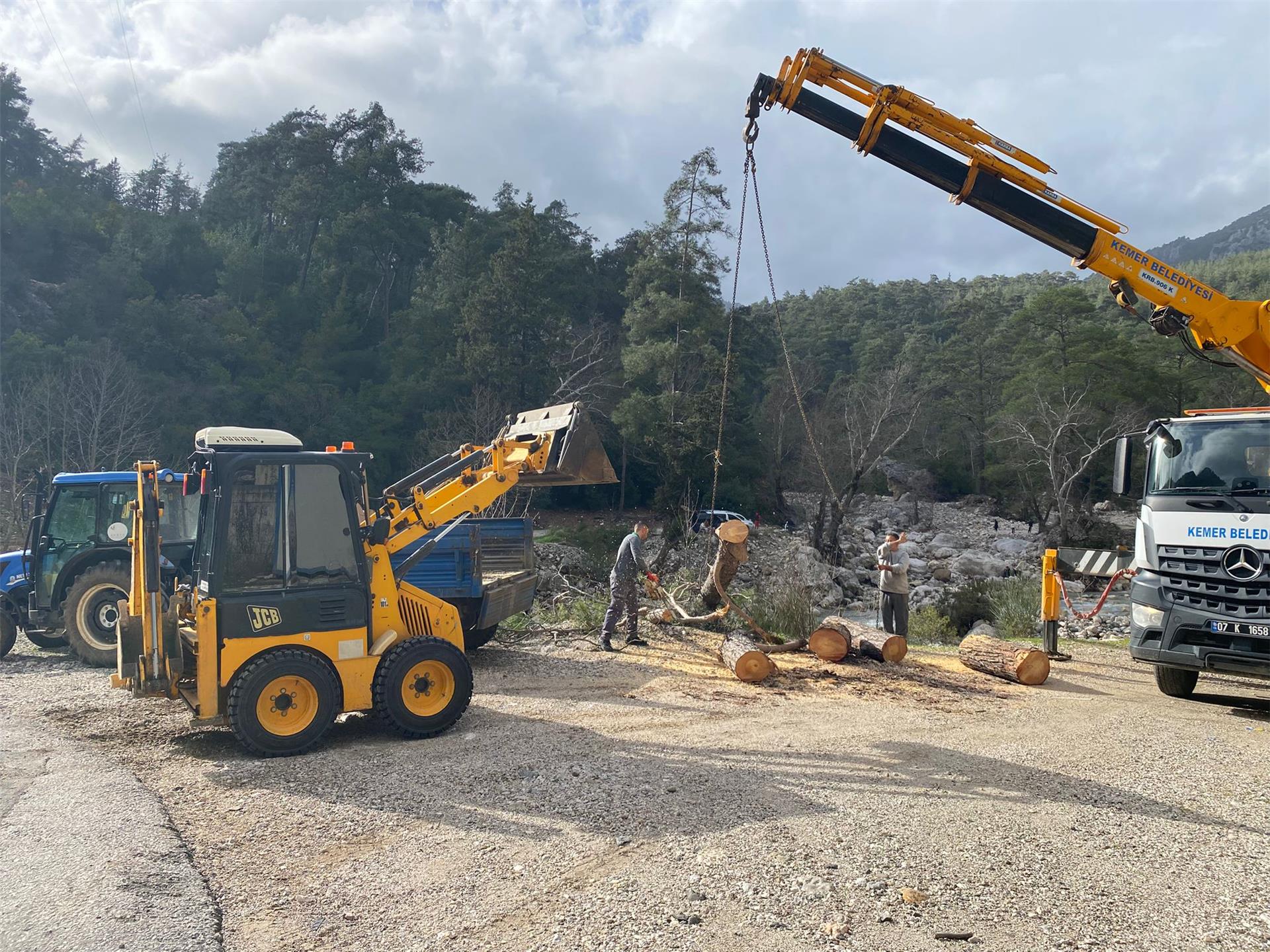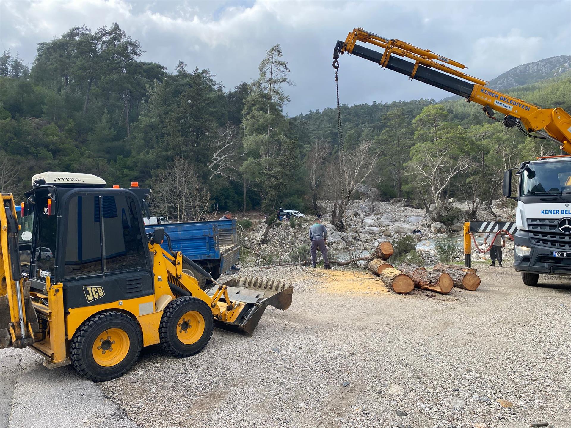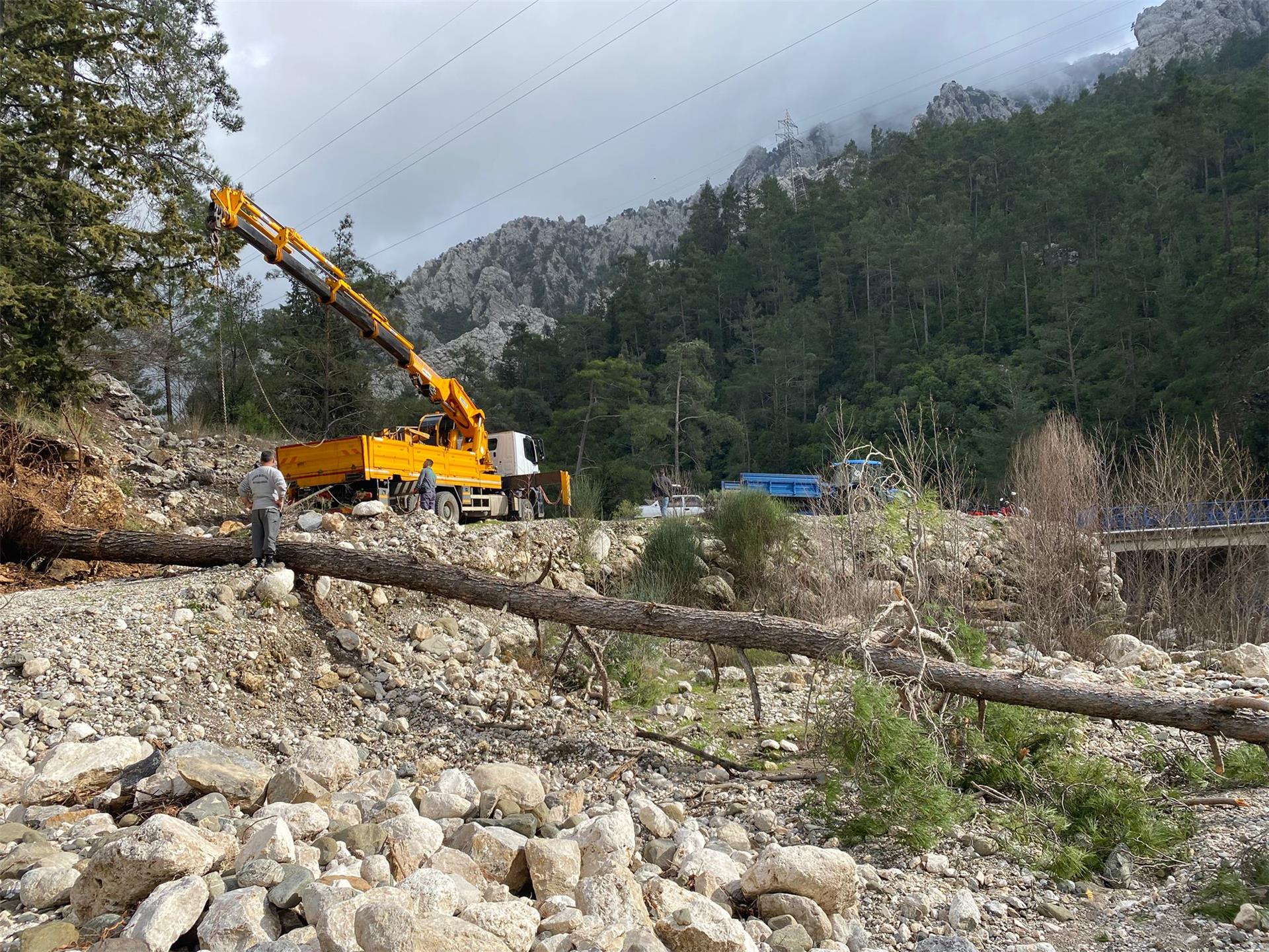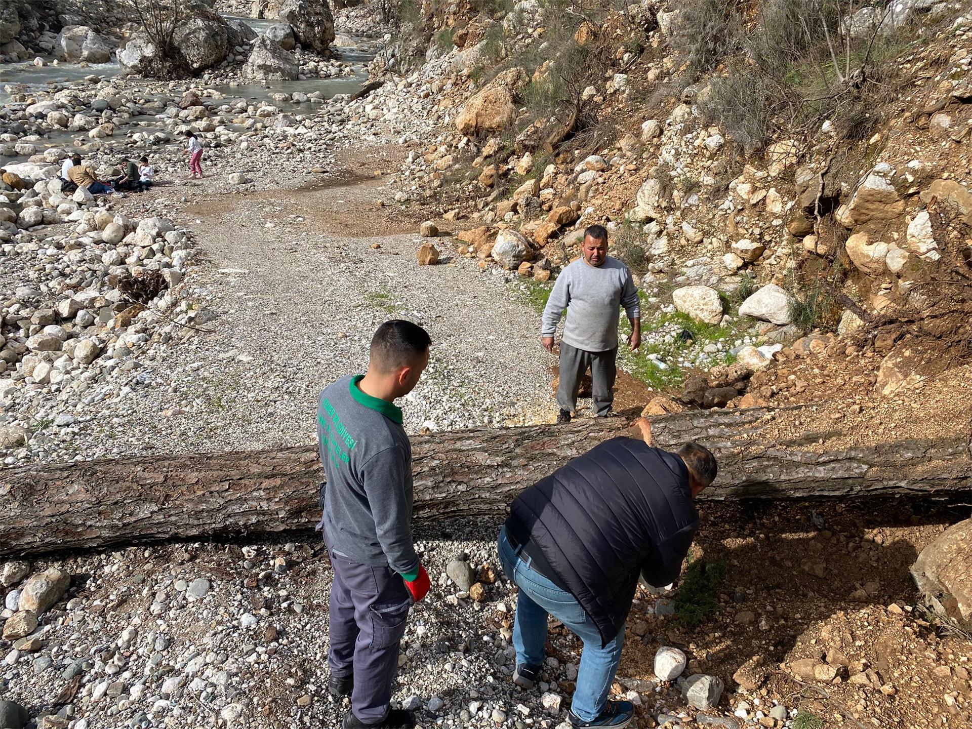 Merkez ve Yeni mahallelerde yola taşan foseptik sonrası yıkama ve temizlik çalışmaları yapan belediye ekipleri, Kesme Boğazı'nda da dereye devrilen ağacı bulunduğu yerden kaldırdı.