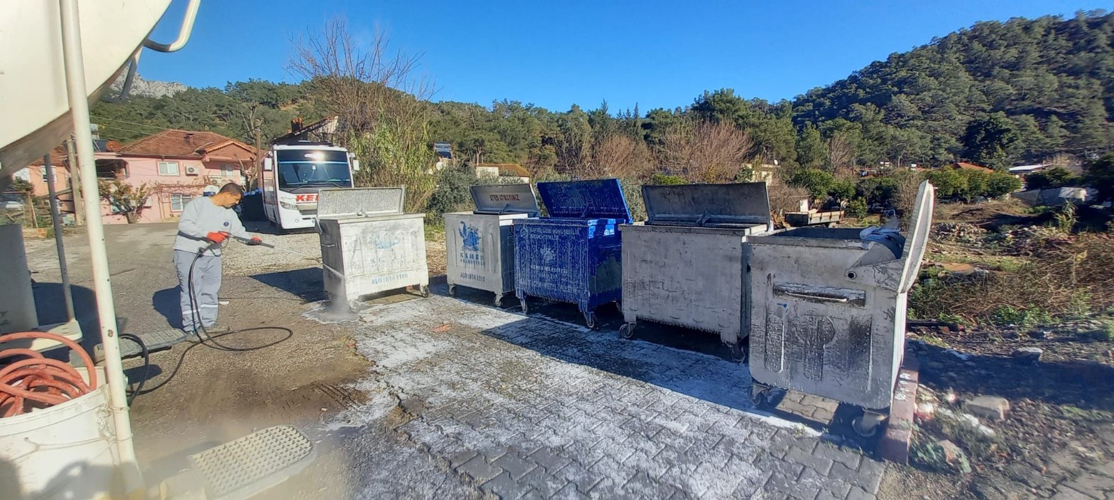 Daha temiz bir Kemer için gece gündüz demeden çalışan belediye ekipleri, çöp konteynerlerini de boşalttıktan sonra ilaçlayarak dezenfekte ediyor. Çöp konteynerleri dezenfekte edilerek, etrafa kötü koku yayılmasının da önüne geçilmiş oluyor.