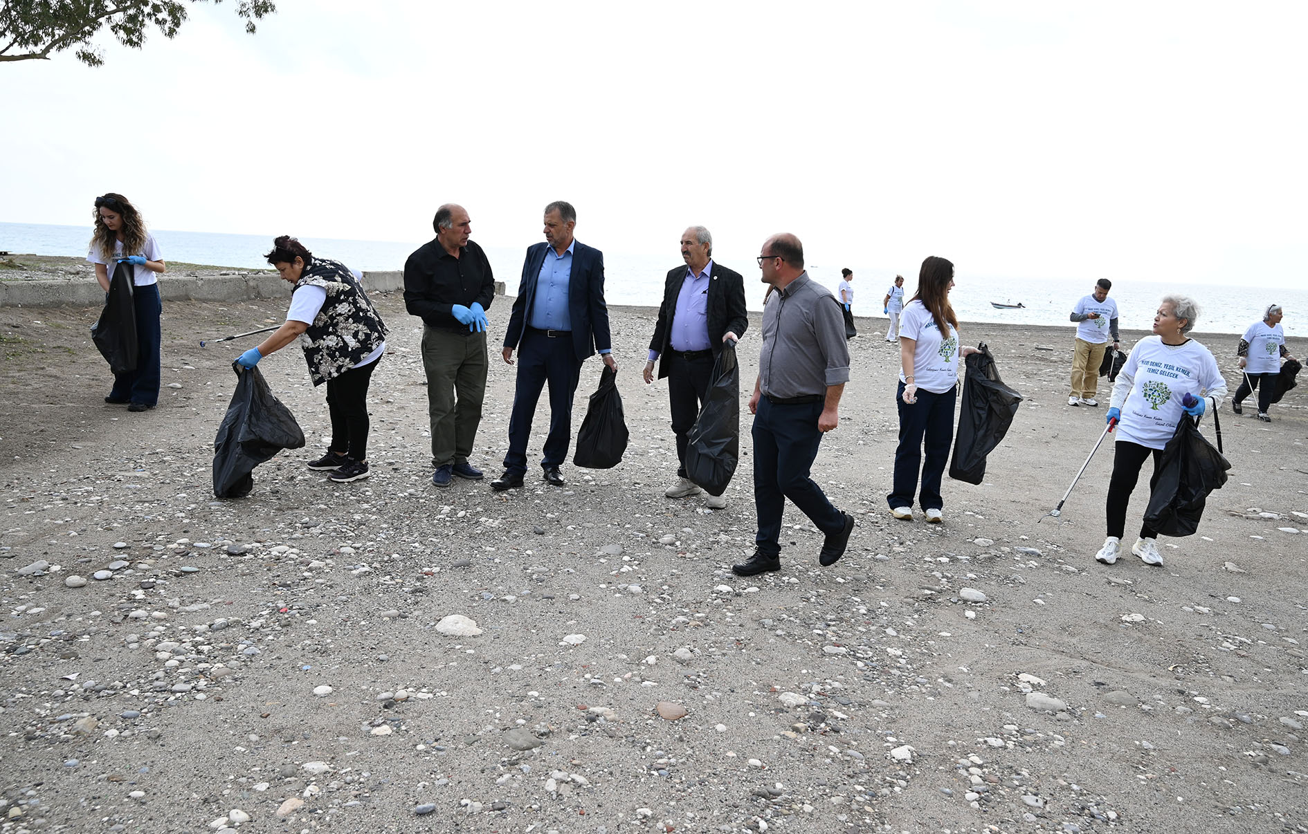 Sahilde toplanan plastik, cam, metal, kağıt, karton, sigara izmariti ve diğer atıklar daha sonra imha edilmek üzere belediye ekipleri tarafından alındı.