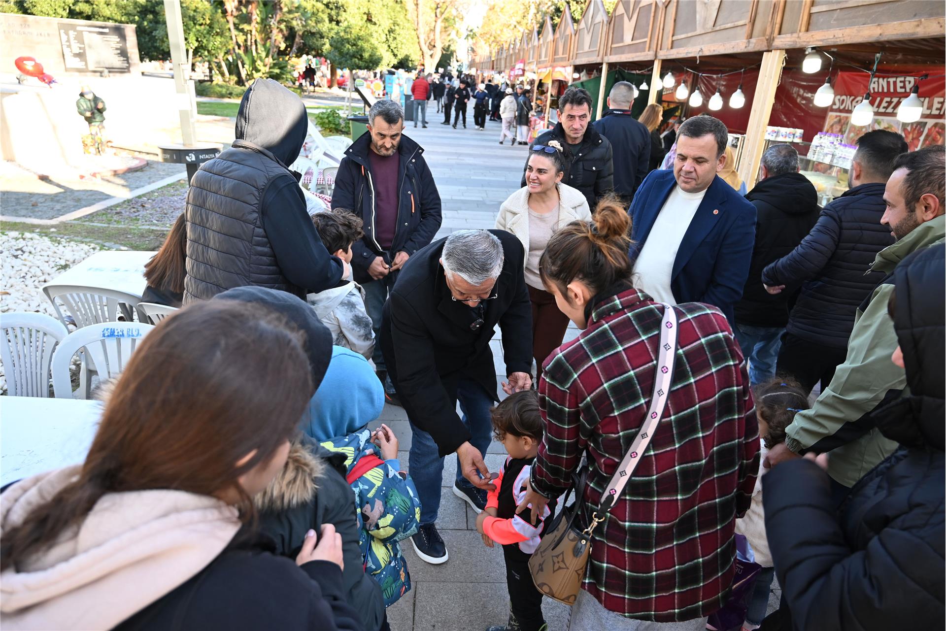 Başkan Topaloğlu'nun festival kapsamında parka kurulan oyun alanları için gelen çocuklara oyun jetonu dağıtması renkli görüntüler oluşturdu.