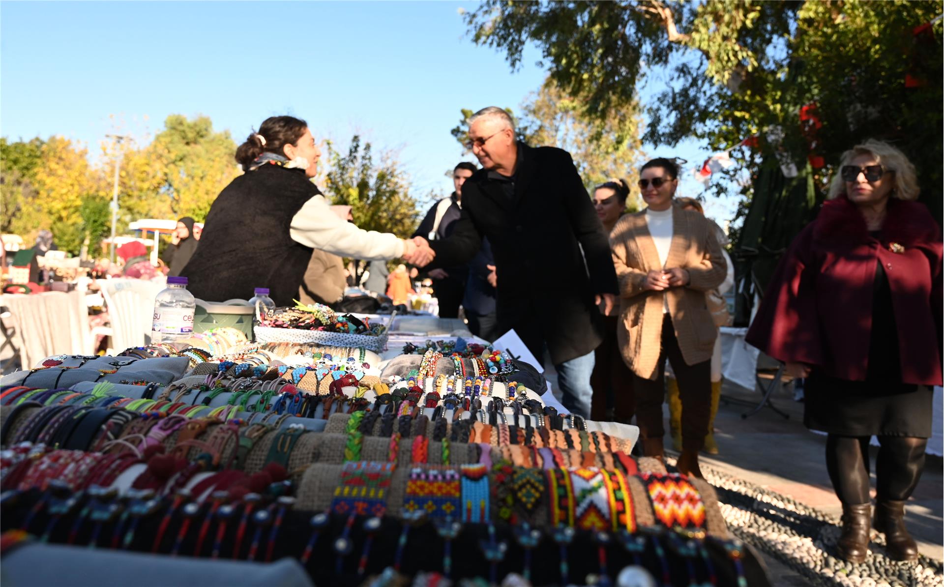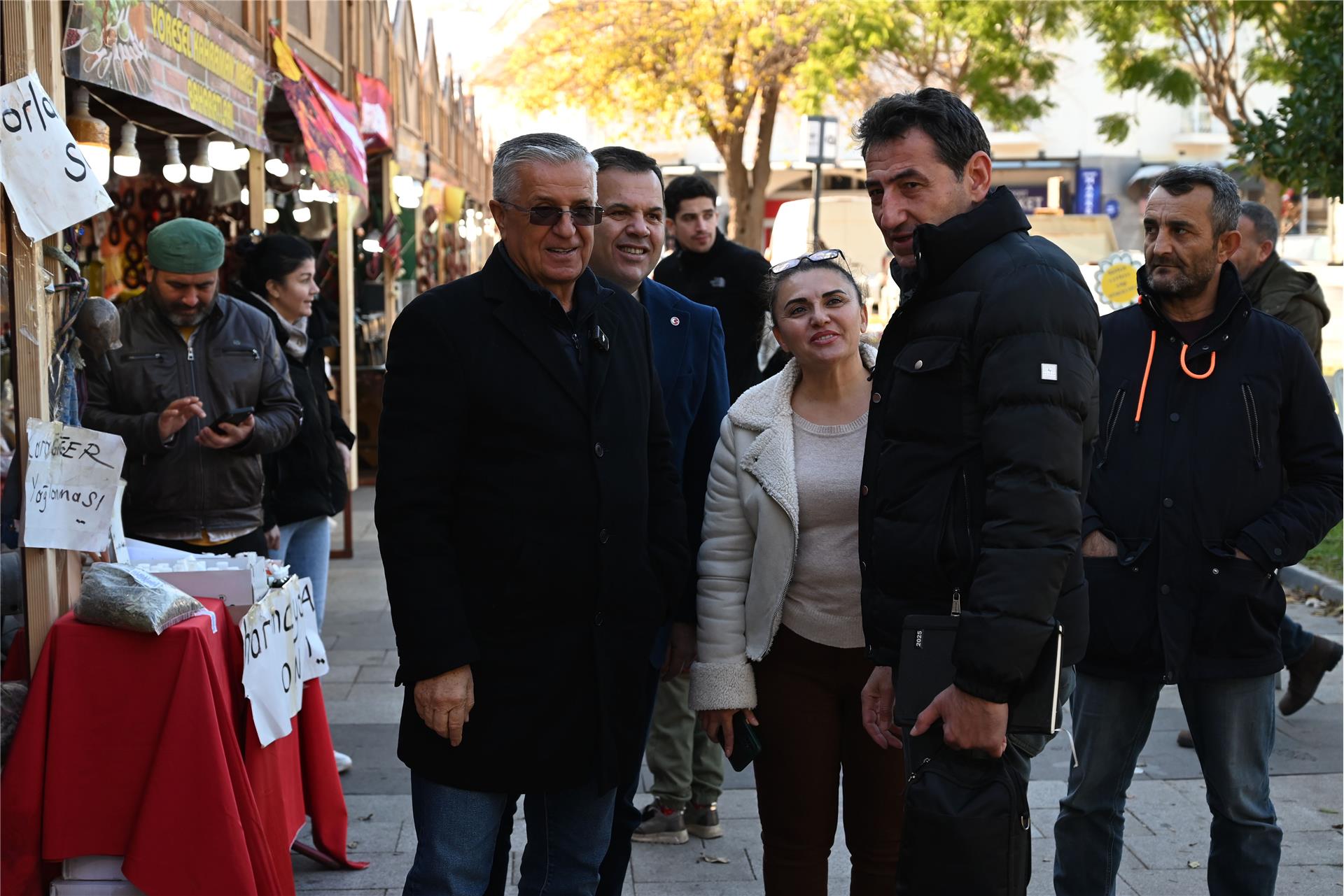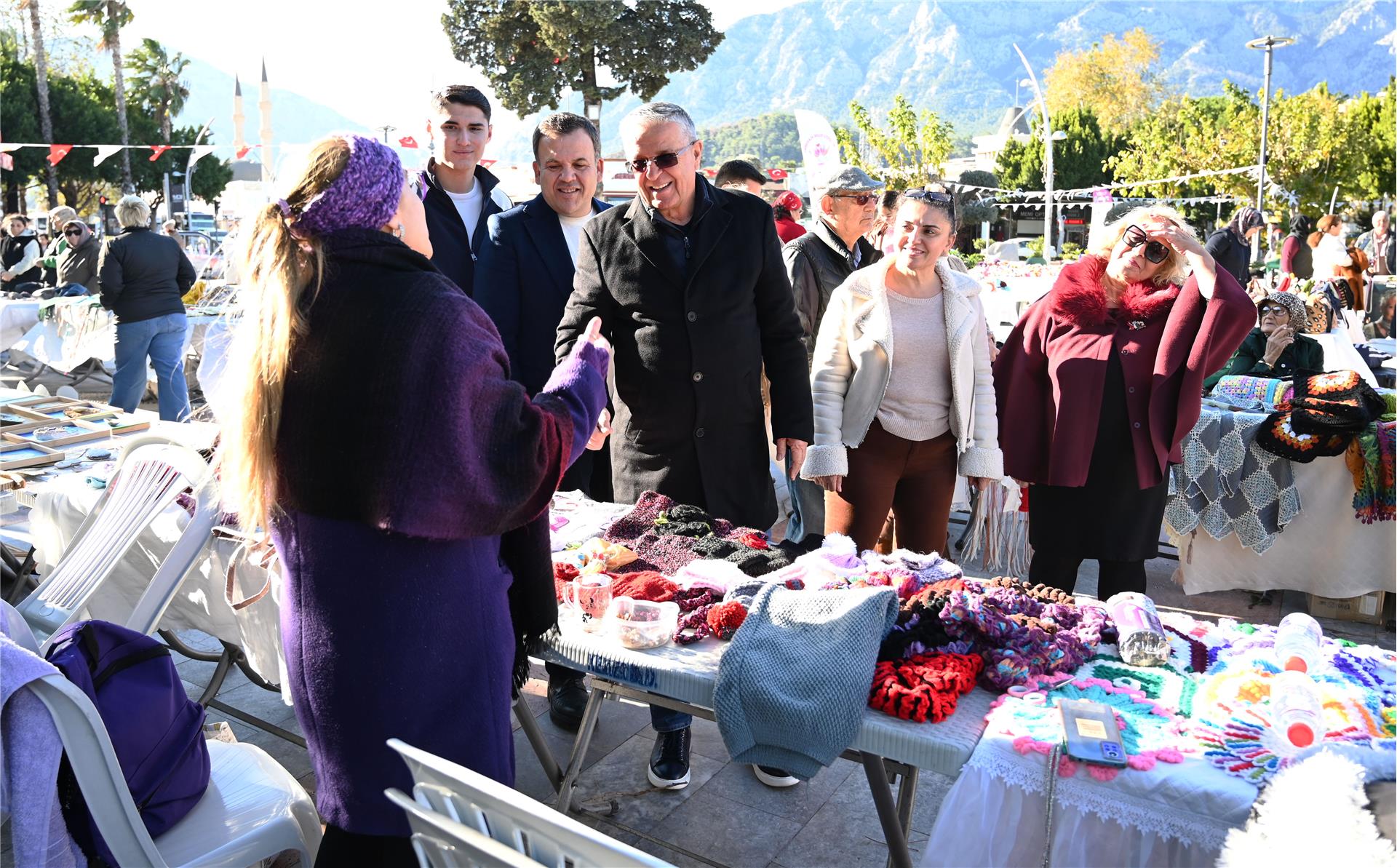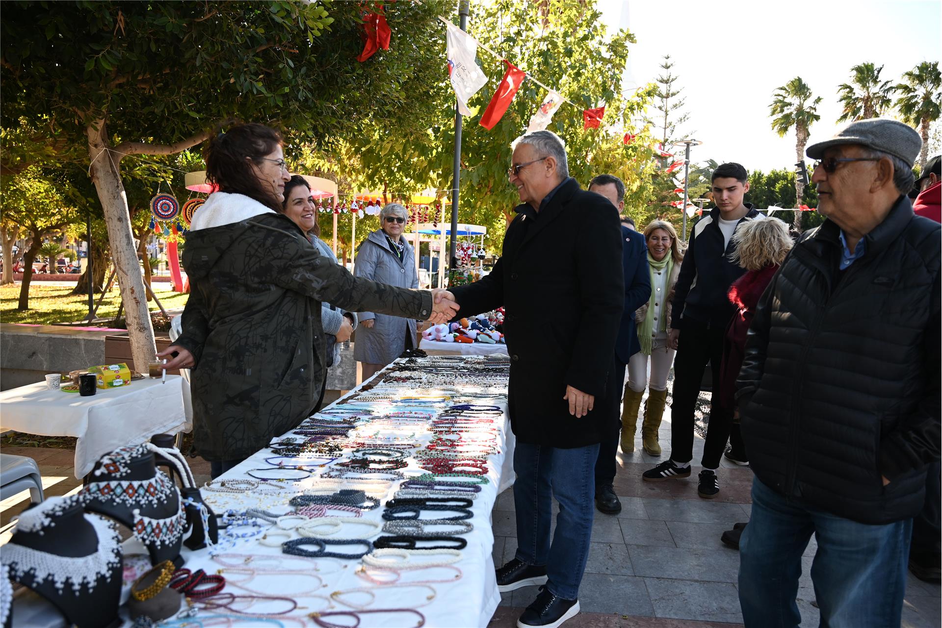 Başkan Topaloğlu ve beraberindekiler ilk olarak Atatürk Parkı'nda kurulan “Üreten ev hanımları” kermesinde stantları gezerek ev hanımlarına hayırlı işler dileklerinde bulundu.