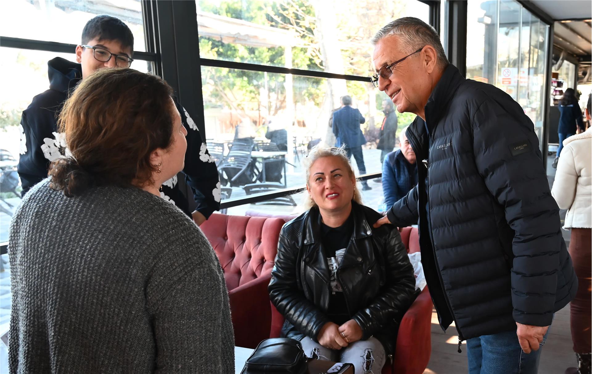 Başkan Topaloğlu ve beraberindekiler daha sonra Kemer Belediyesi Deniz Kafe'ye geçerek denize karşı çayını yudumlayan ve sohbet eden vatandaşlarla selamlaştı, kafede çalışan belediye personeline kolaylıklar dileyerek yeni yıllarını kutladı.