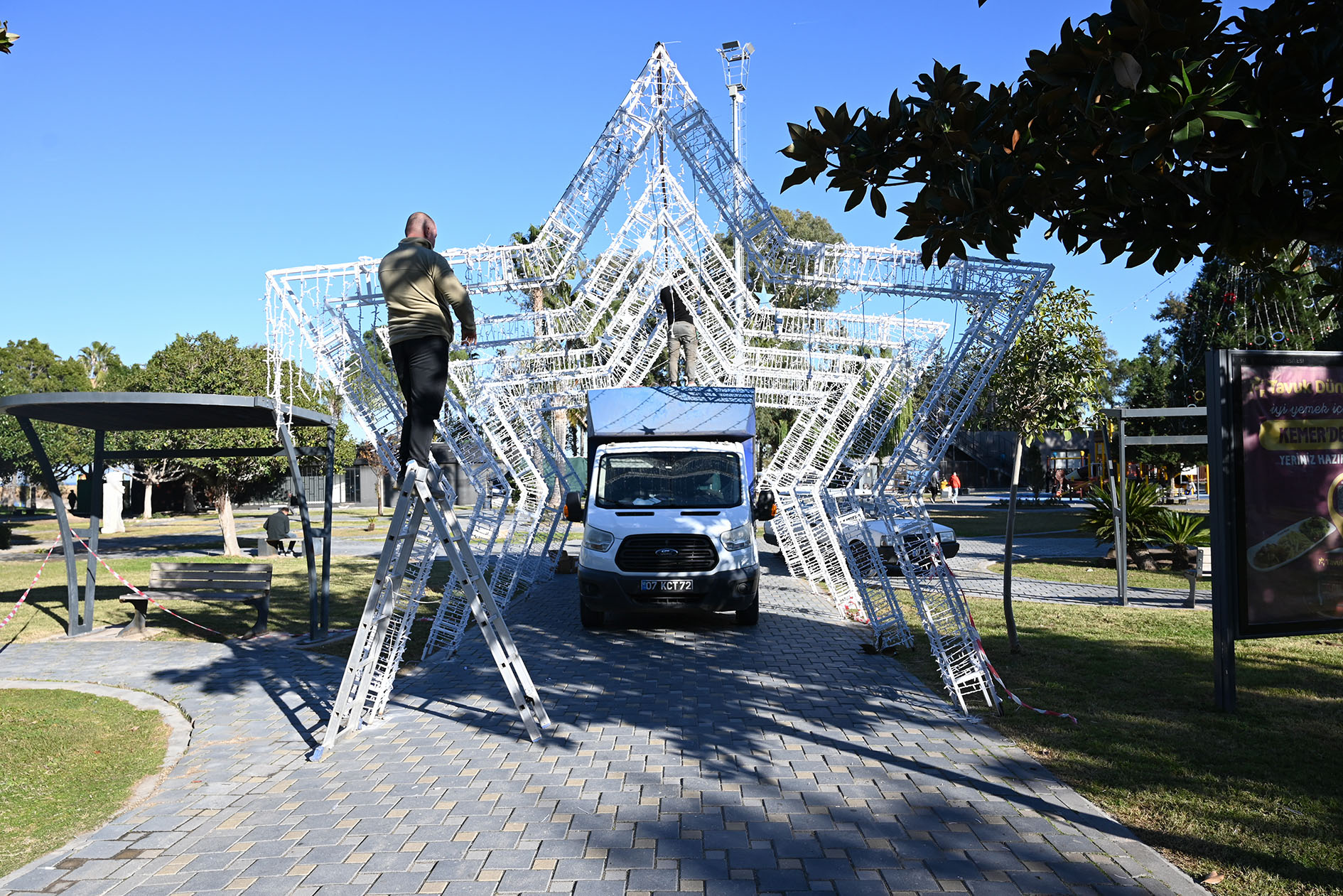Kemer Belediyesi Kültür ve Sosyal İşler Müdürlüğü ekipleri, Mustafa Ertuğrul Aker Parkı'nda yeni yılla ilgili süslemeler yaptı.