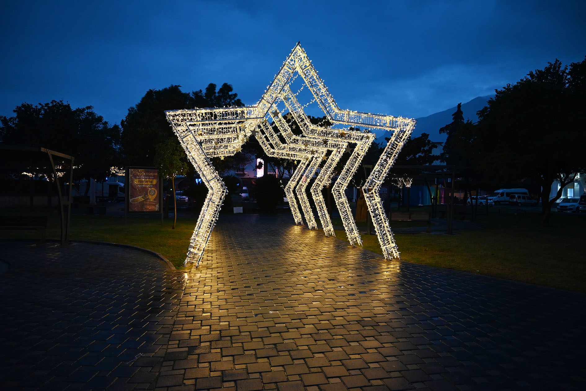 İlçede tatilini sürdüren yerli ve yabancı misafirler ile vatandaşlar, Noel Baba heykeli ve ışıl ışıl olan parkta bol bol fotoğraf çekti.