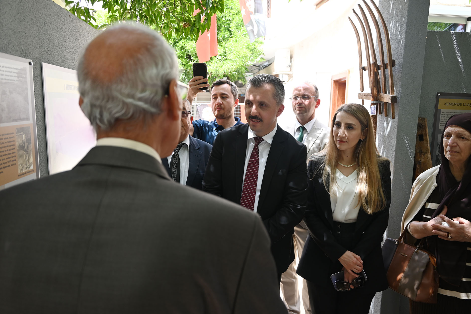 Turizme büyük katkı sağlayacak olan Kültür Evi'ndeki belge, eşya, fotoğraflar ve diğer önemli objeleri inceleyen protokol üyeleri, Ramazan Kar'dan bilgi aldı.