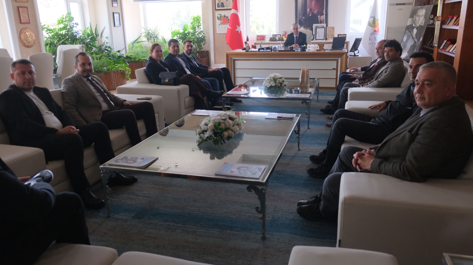 Geçen hafta yapılan olağan genel kurulda Rıza Sönmez'in ardından KEMİAD Başkanlığına seçilen Özkan Çakmak ve ekibi, Başkan Topaloğlu'nu makamında ziyaret ederek yapılacak olan çalışmalarla ilgili fikir alışverişinde bulundu.