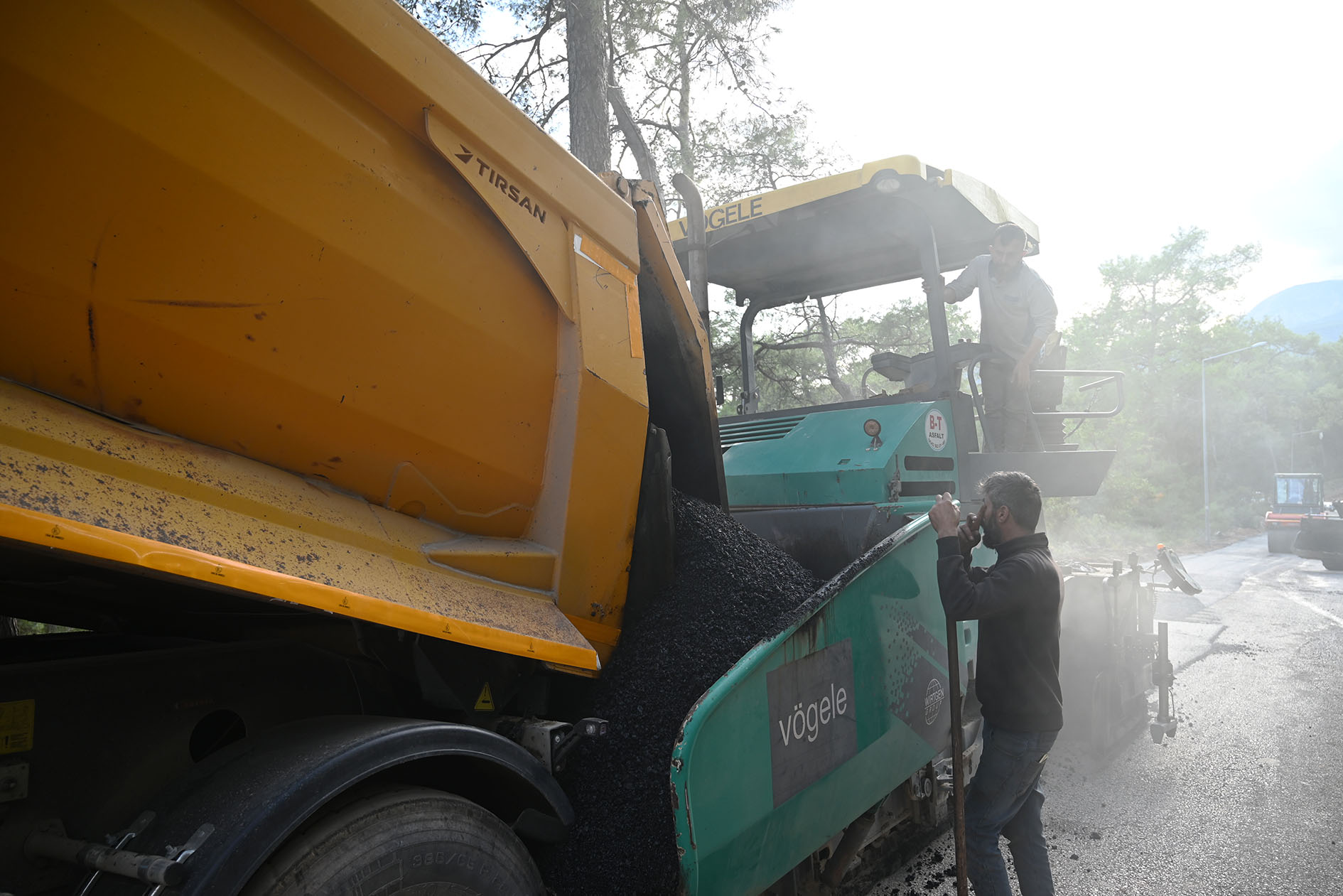 Kemer Belediyesi Fen İşleri Müdürlüğü ekipleri, Kiriş dağ yolu olarak bilinen Mustafa Ertuğrul Caddesi üzerinde Milli Parklar Genel Müdürlüğü'nden beklenen izin yazısı nedeni ile geciken asfalt yama çalışmasını, izin yazısının gelmesinin ardından başlattı.