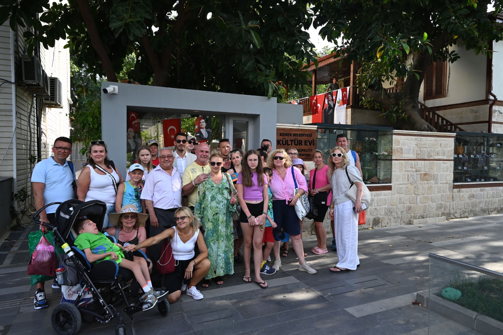 Kemer yöresinde halkın kullandığı ev eşyaları, tarım aletleri, eski yaşantılara ait objeler, eski fotoğraflar ve birçok tarihi belgenin sergilendiği Kültür Evi'ni gezen Polonyalı grup, Belediye Meclis Üyesi Efir ve Kültür Evi Sorumlusu Kar'dan bilgi aldı.