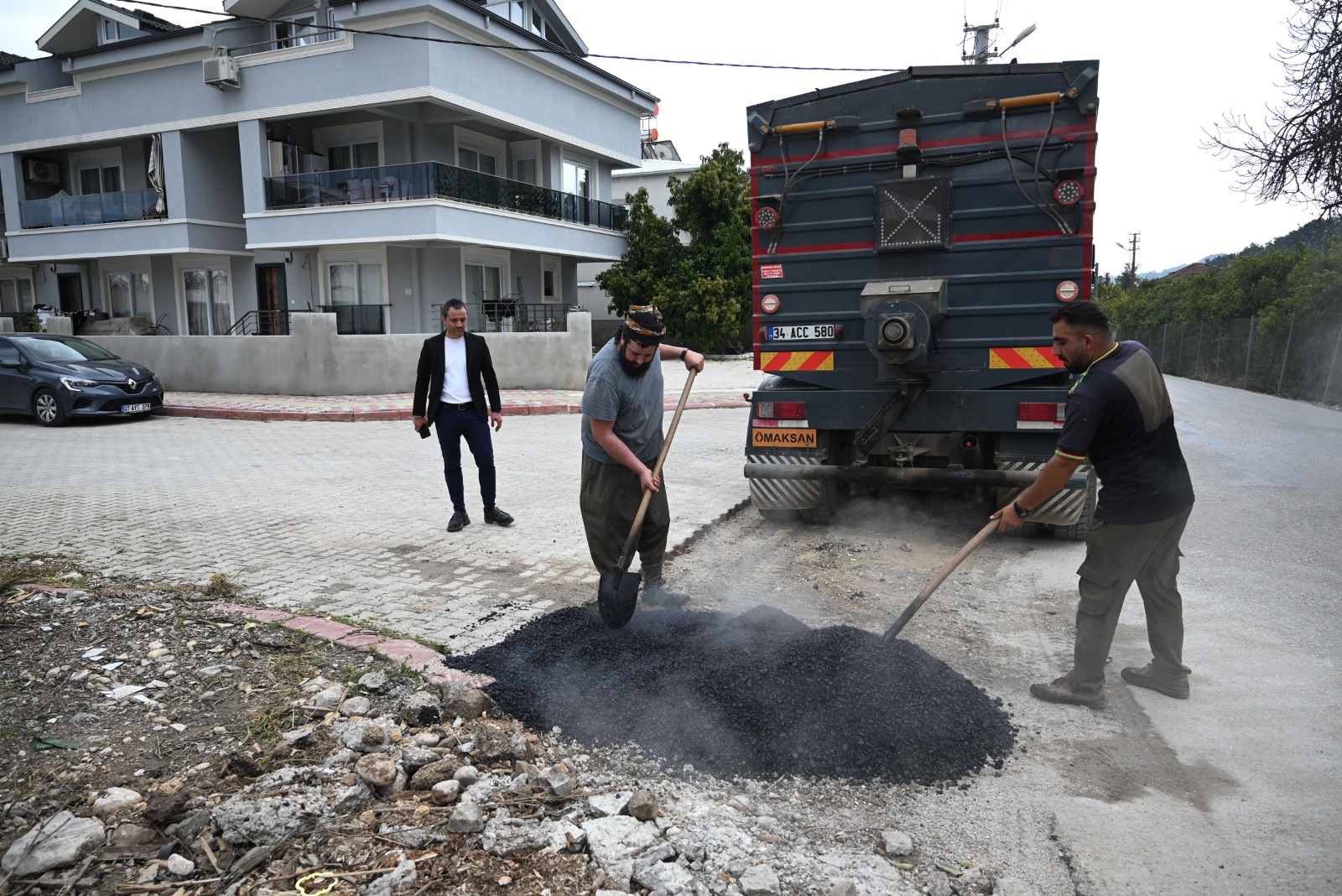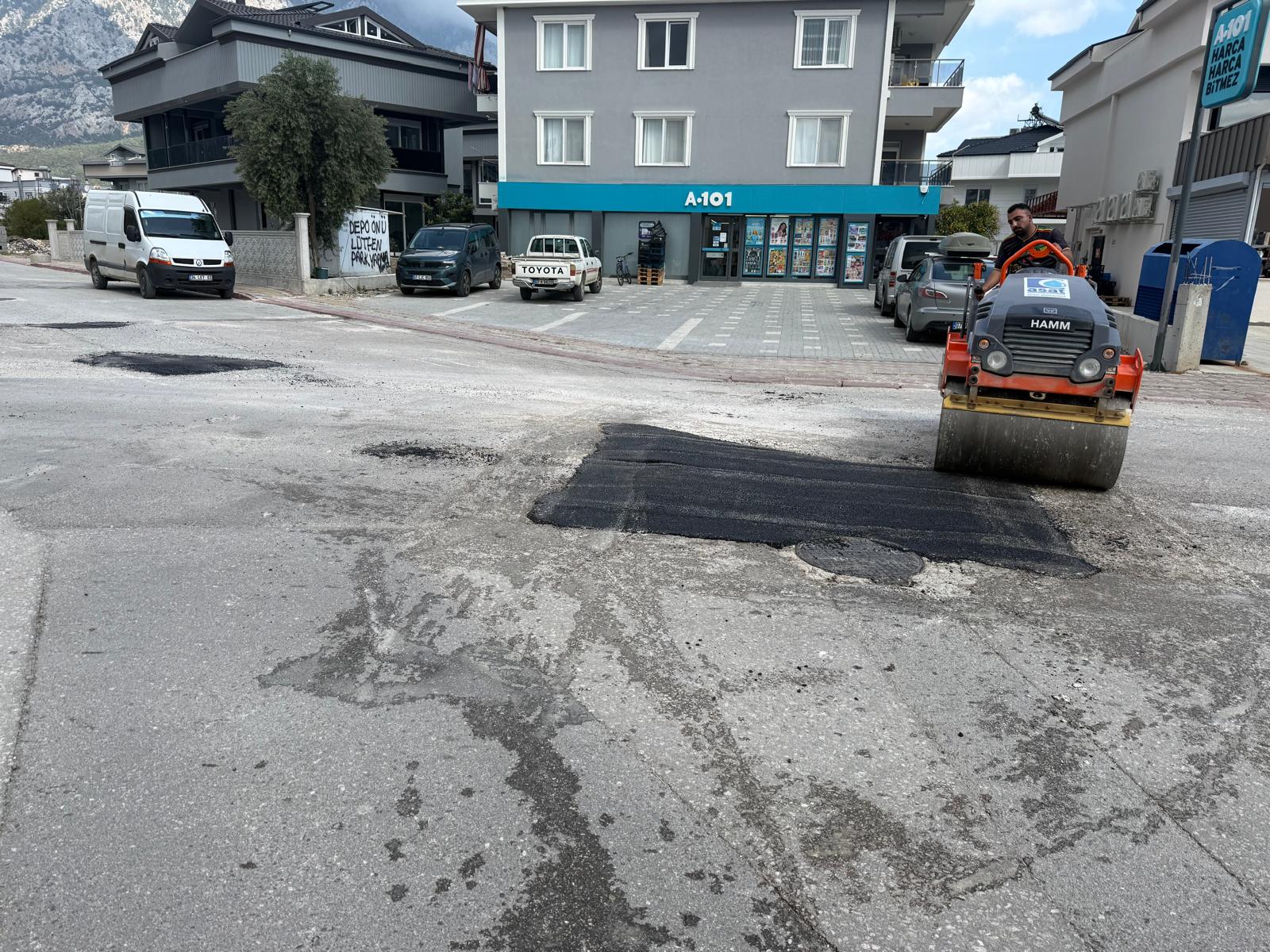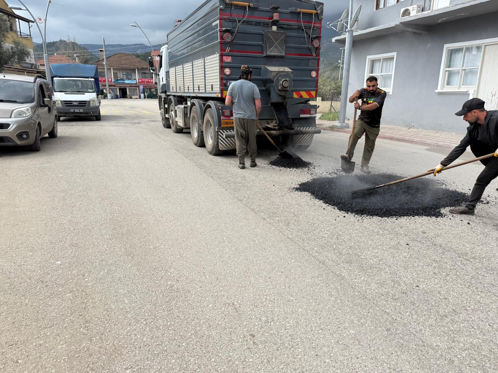 Kemer Belediyesi, Kuzdere Mahallesi'nde bozulan ve tahrip olan yollarda asfalt yama çalışmalarını sürdürüyor.