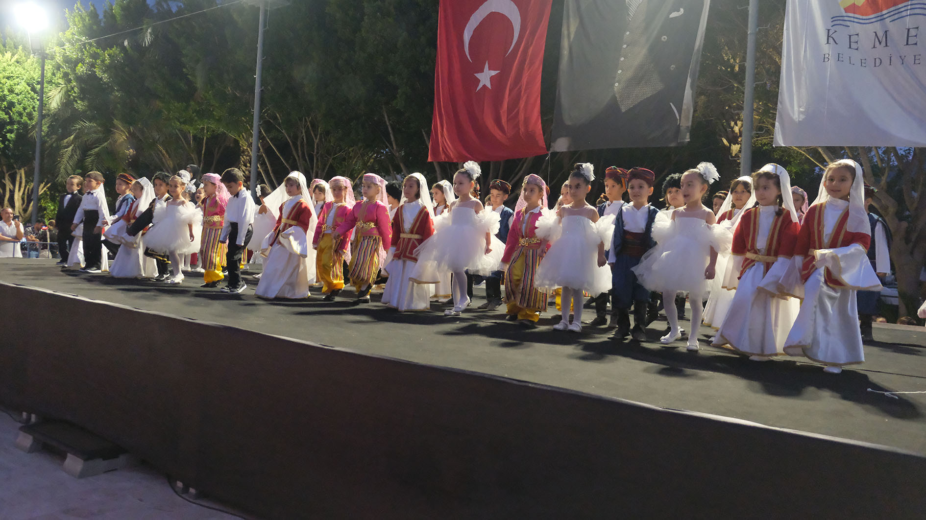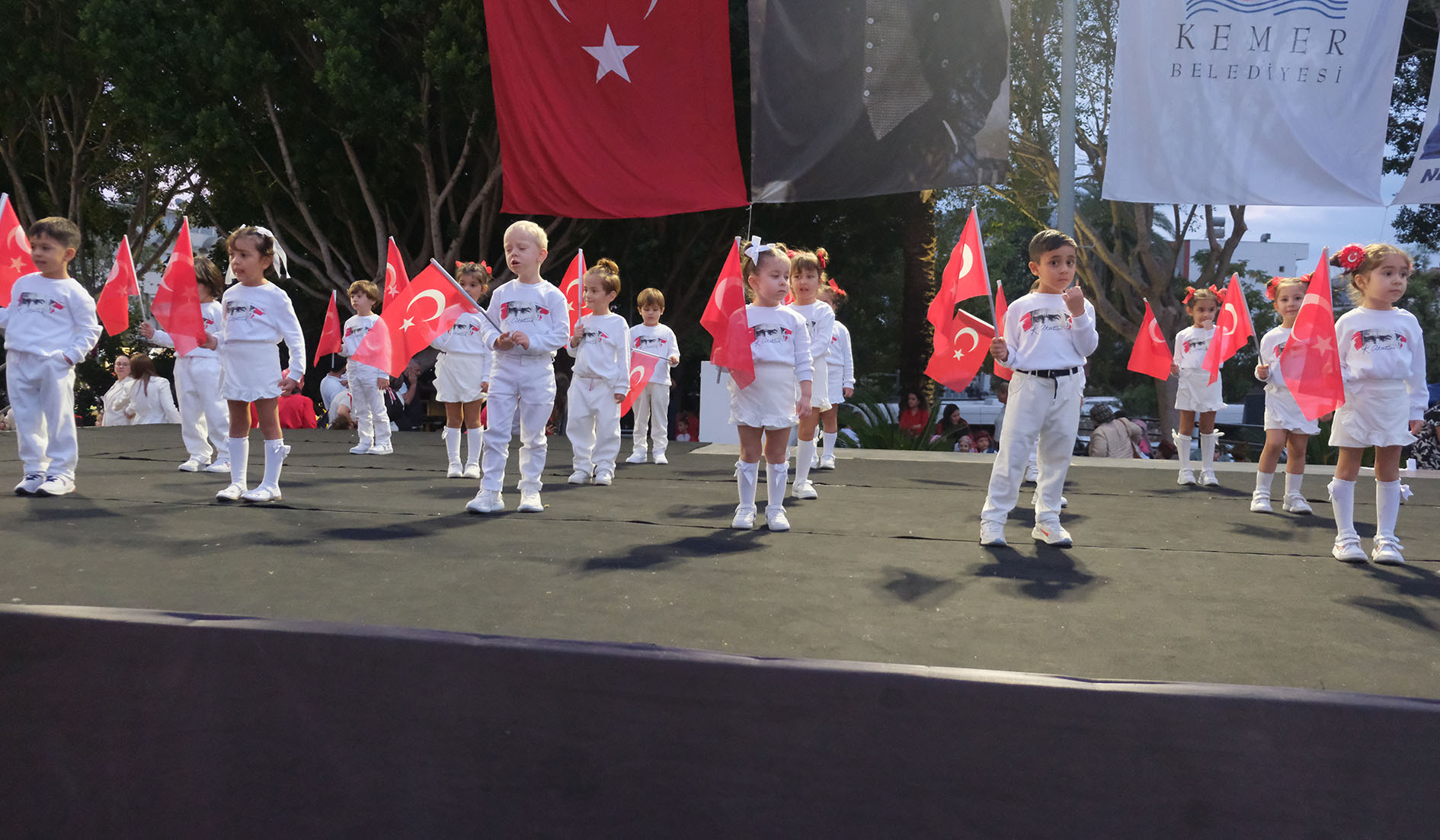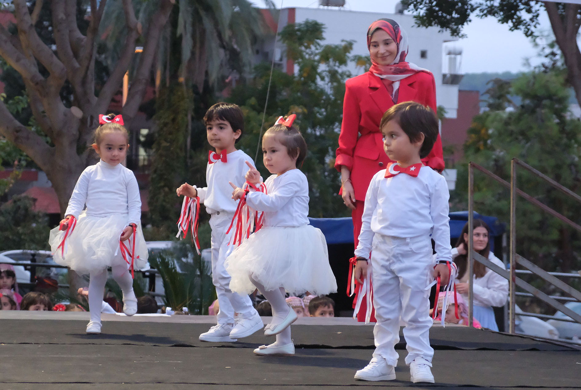Kemer Belediyesi Ülker-Orduvar Akman Kreş ve Gündüz Bakımevi'de eğitim gören minik öğrenciler, 29 Ekim Cumhuriyet Bayramı kutlamaları kapsamında gösteri sundu.