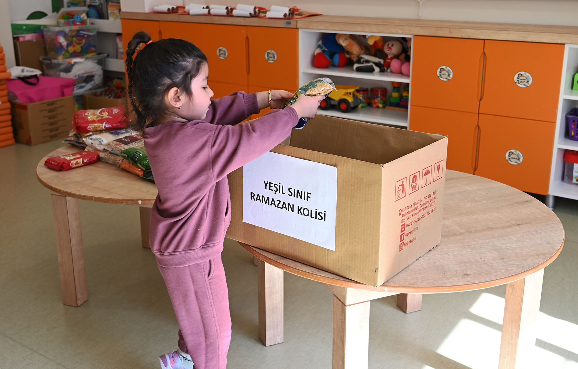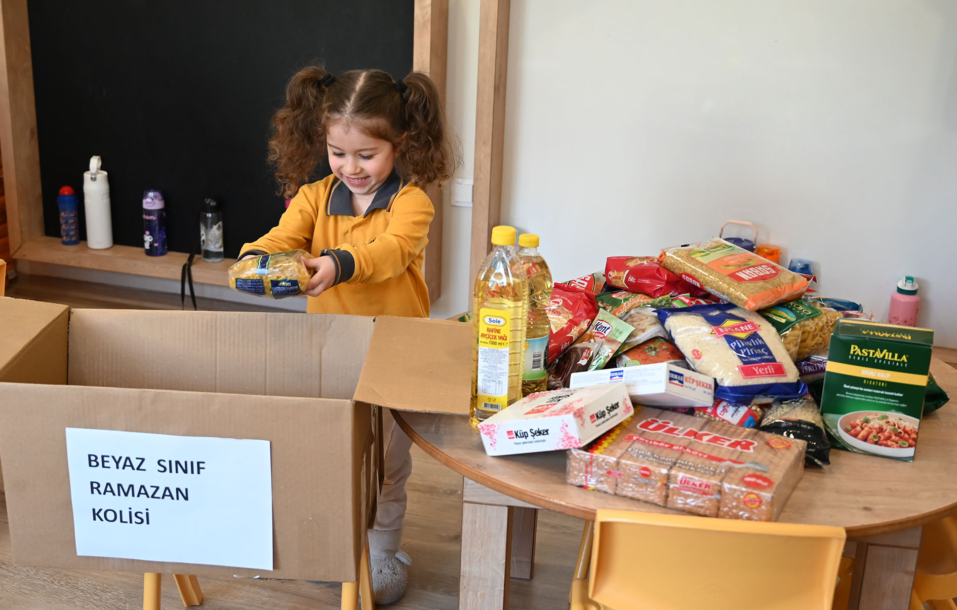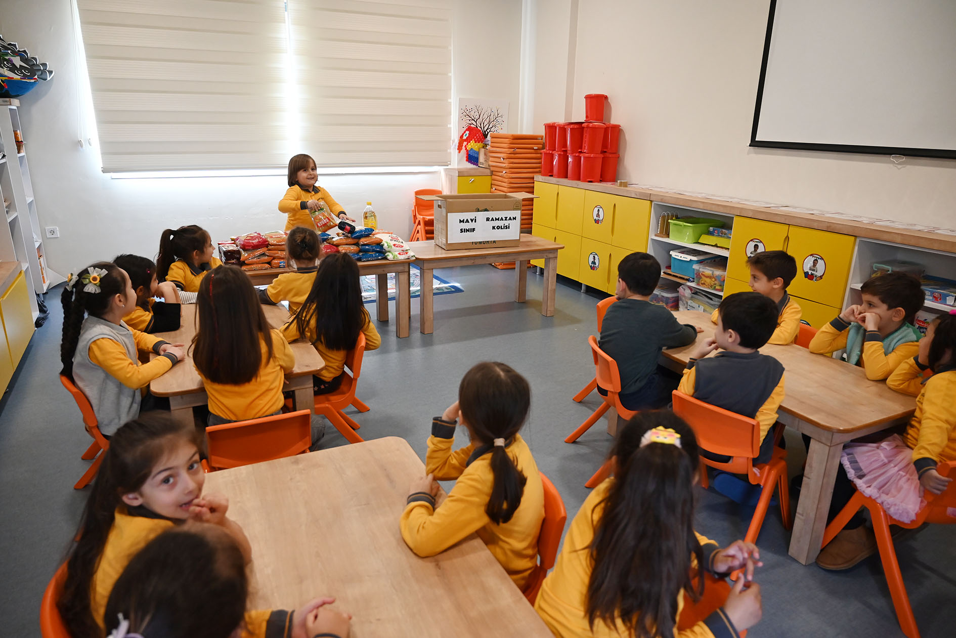 Birlik, beraberlik, yardımlaşma ve paylaşmanın öneminin daha da arttığı Ramazan ayı dolayısıyla minik öğrenciler, Kemer'deki ihtiyaç sahibi ailelere evlerinden getirdiği gıda ürünlerini öğretmenleri eşliğinde koliledi.