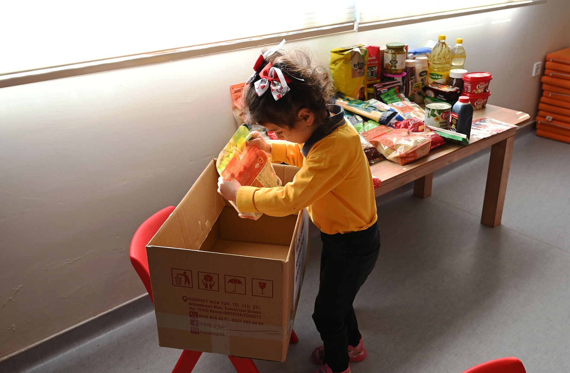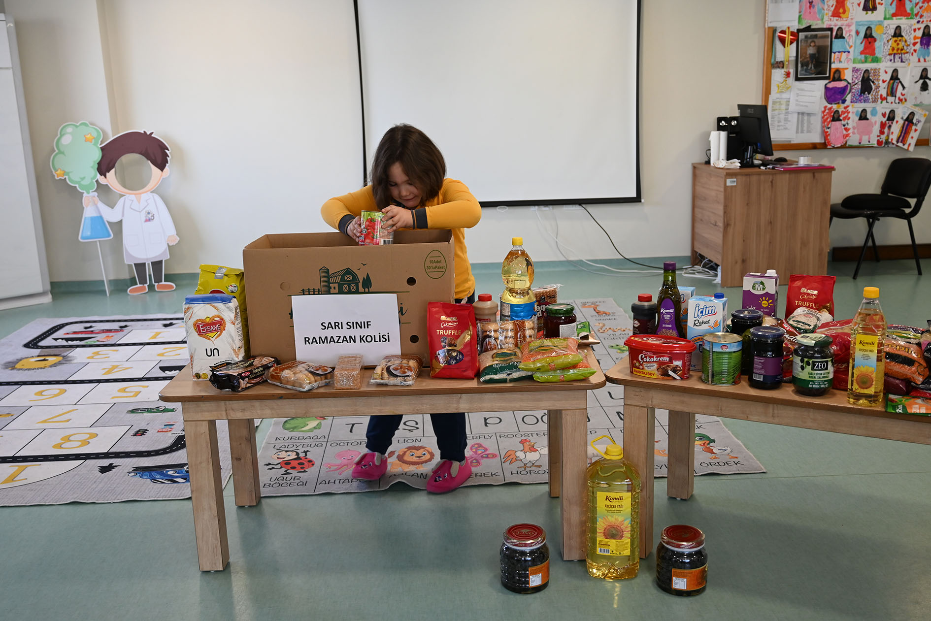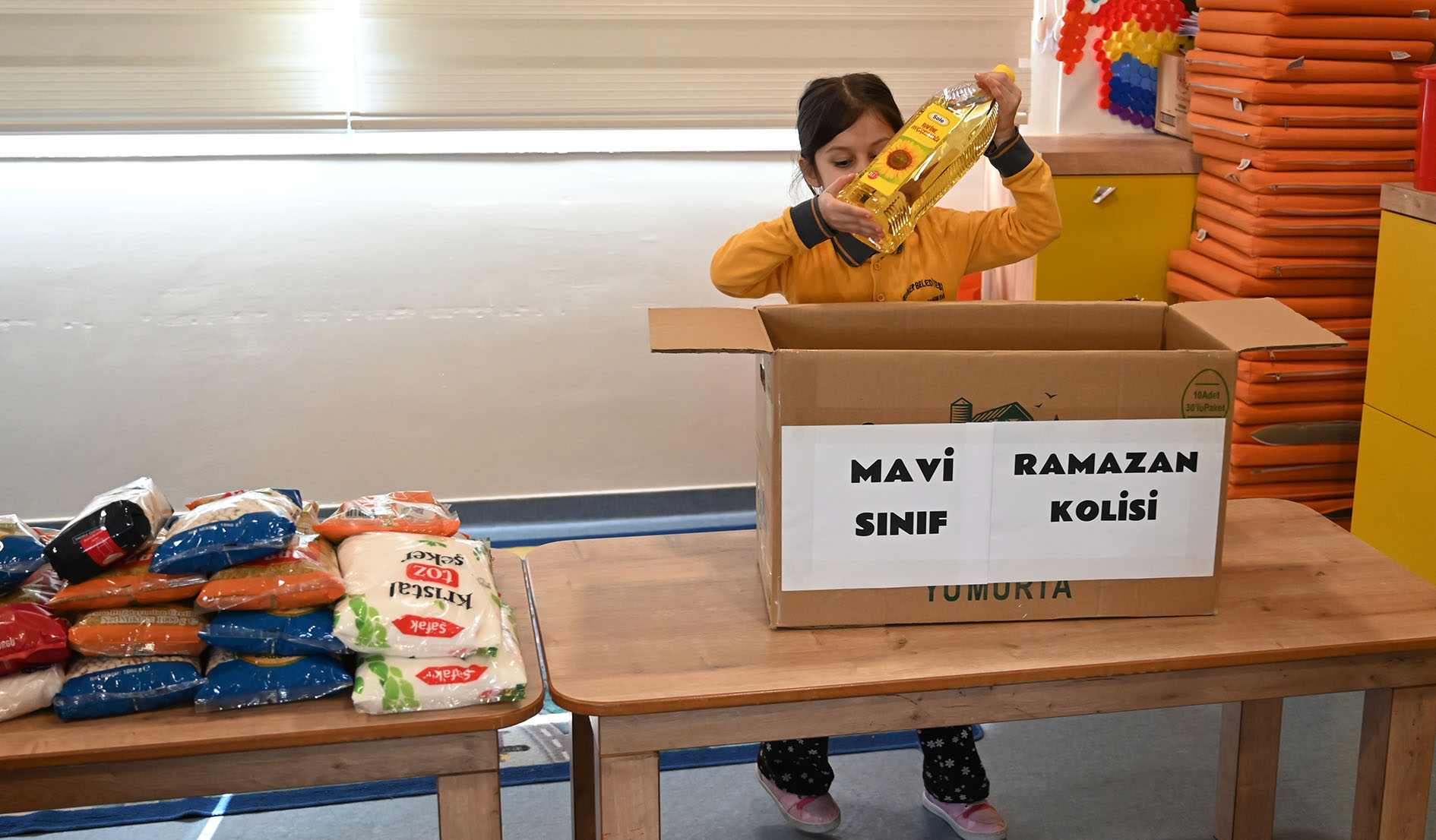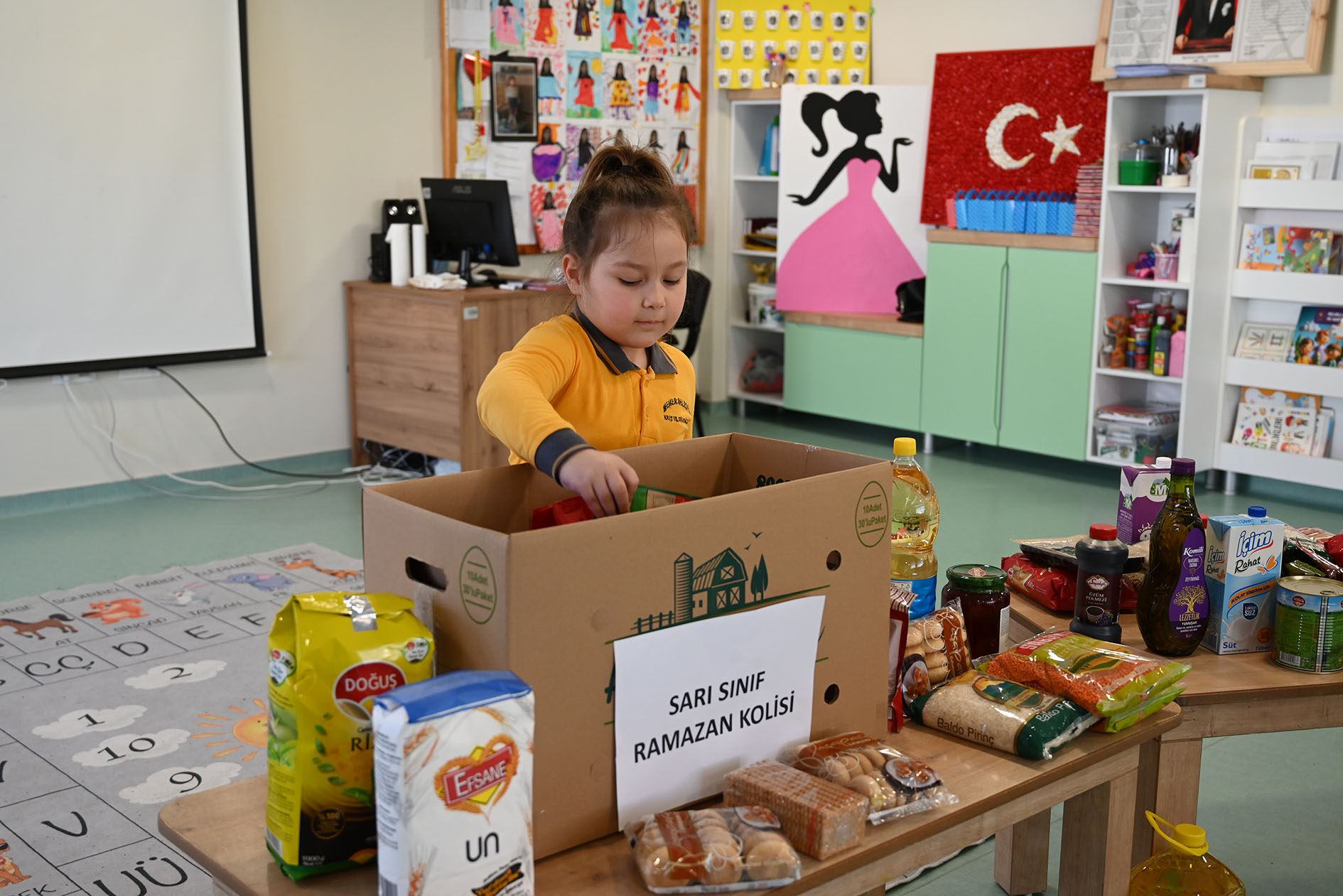 Birlik, beraberlik, yardımlaşma ve paylaşmanın öneminin daha da arttığı Ramazan ayı dolayısıyla minik öğrenciler, Kemer'deki ihtiyaç sahibi ailelere evlerinden getirdiği gıda ürünlerini öğretmenleri eşliğinde koliledi.