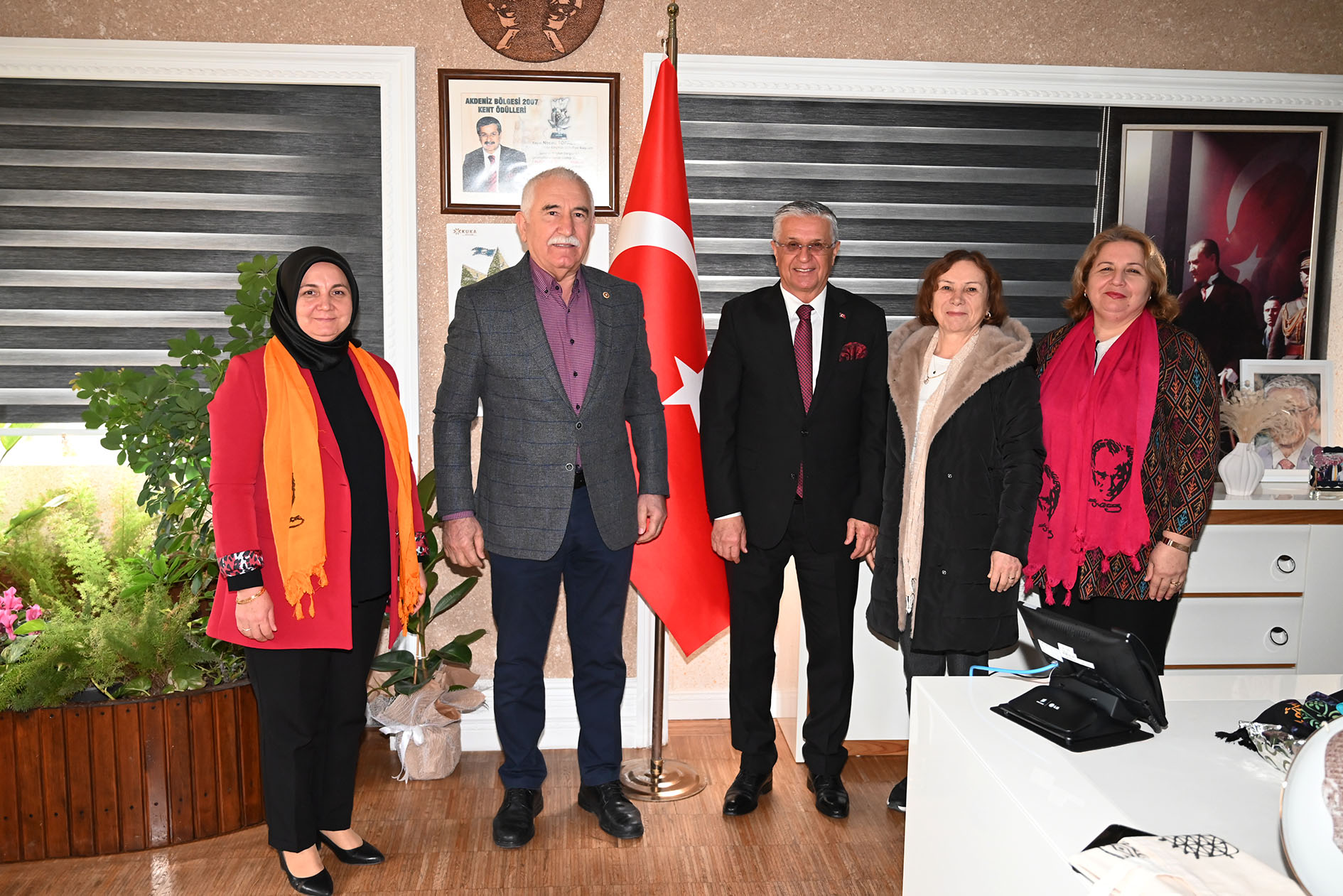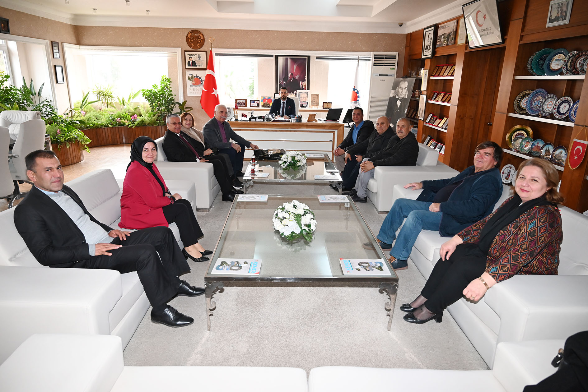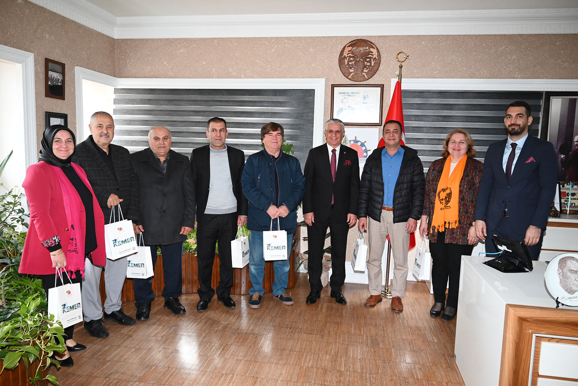 Kemer bölgesindeki muhtarlar, Kemer Belediye Başkanı Necati Topaloğlu ve Kemer Belediye Başkan Vekili Cansın Efir'i ziyaret ederek yeni yıllarını kutladı.