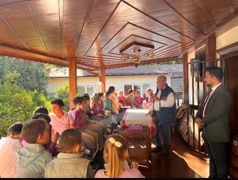 Kültür Evi Sorumlusu Yerel Tarihçi Ramazan Kar'ın destekleriyle kurulan Kültür Evi'ne gelen öğrenciler, Kar'dan Kültür Evi ile ilgili bilgiler aldı.