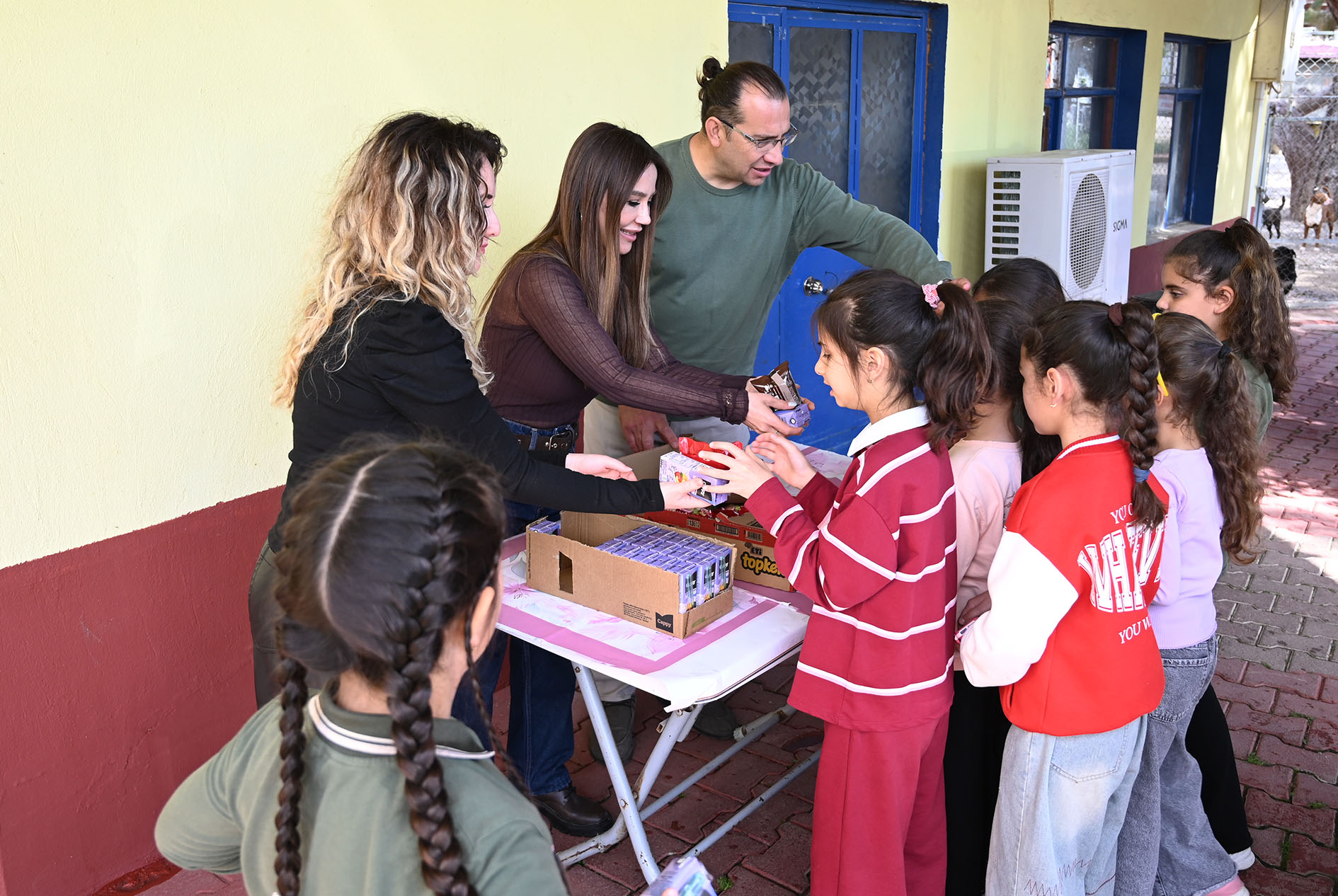 Meyve suyu ve kek ikram edilen öğrenciler, program sonrası hatıra fotoğrafı çektirdi.