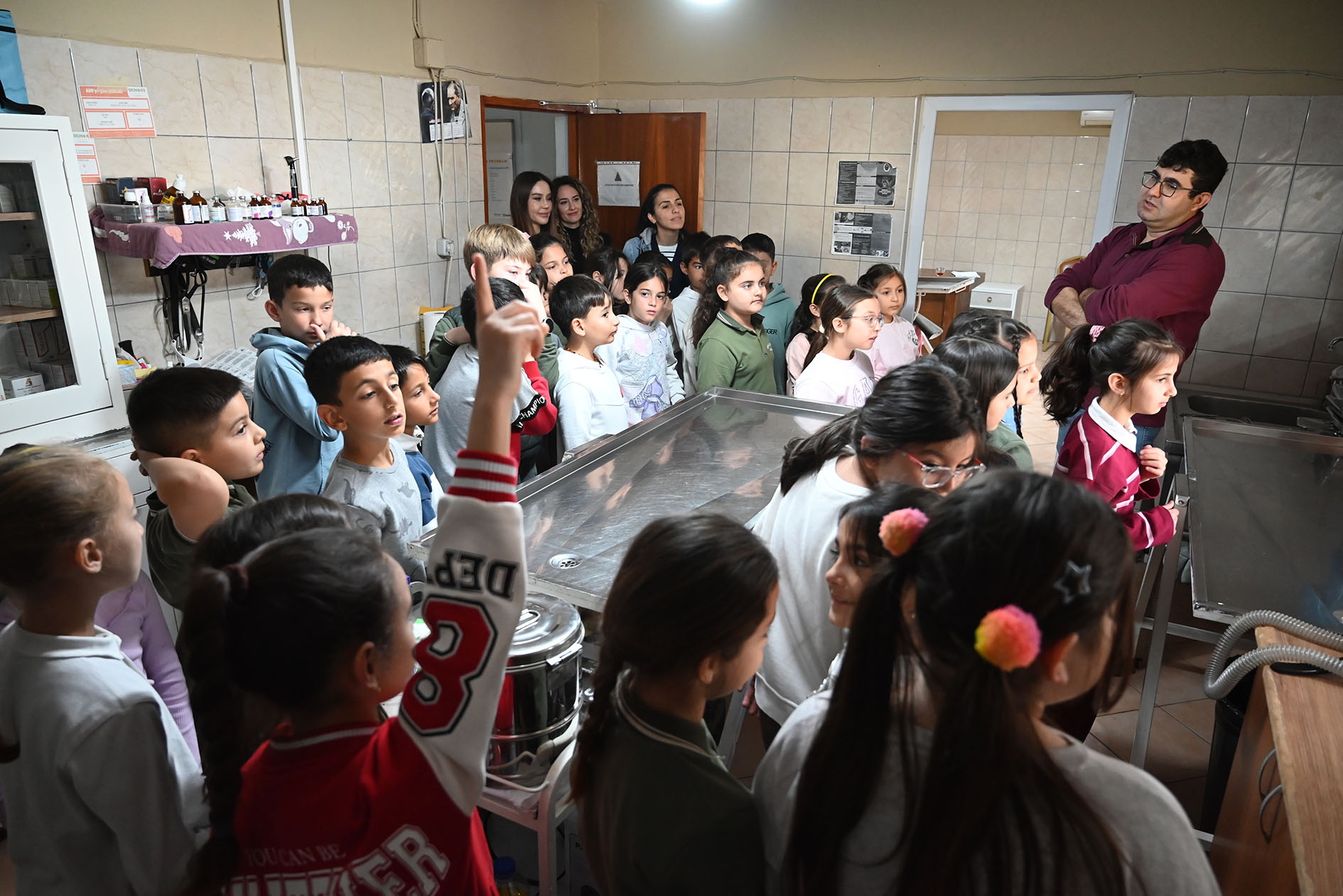 Kemer Belediyesi Sıfır Atık ve İklim Değişikliği Müdürü Serap Minta , tesiste sokak hayvanları için üretilen mamaların nasıl yapıldığını ve kendisini ilgiyle izleyen öğrencilerin merak ettikleri soruları cevapladı.