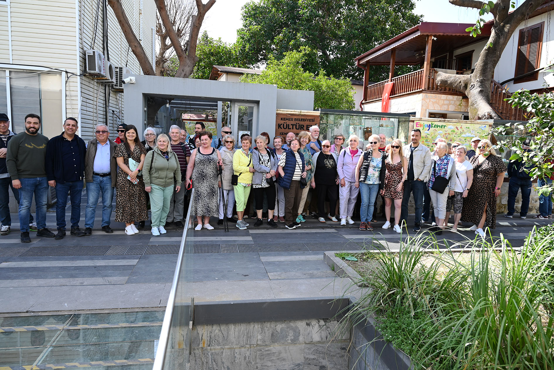 Kültür ve sürdürülebilir turizm projesi kapsamında Kumluca Turizm Mesleki ve Teknik Anadolu Lisesi'ne gelen 39 Polonyalı, okul müdürü Serkan Tekin Turhan ve İngilizce Öğretmeni Arif Gelebek eşliğinde Kemer Belediyesi Kültür Evi'ni de ziyaret etti.