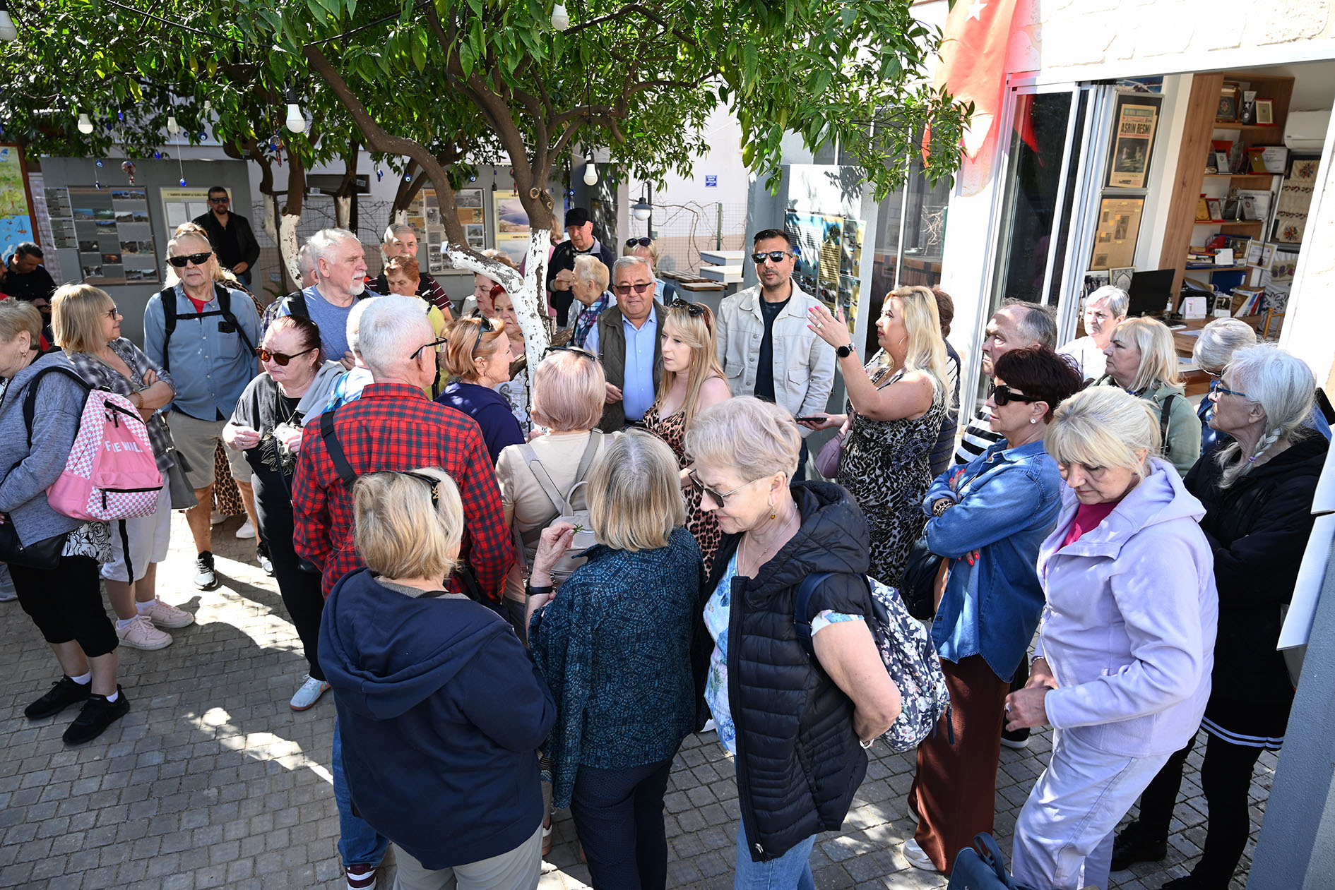 Kültür Evi'nde Kemer'in eski yaşamını anlatan değerli eşyalar, fotoğraflar, objeler ve günlük kullanılan kıyafetleri tek tek inceleyen Polonyalı kafile, Kültür Evi Sorumlusu Ramazan Kar'dan bilgi aldı.