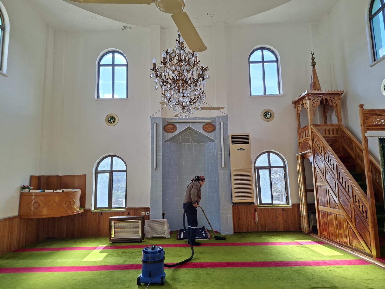 Kemer Belediyesi Temizlik İşleri Müdürlüğü ekipleri, mübarek Ramazan ayı öncesi Kemer'de genelindeki camilerde temizlik çalışması yaptı.