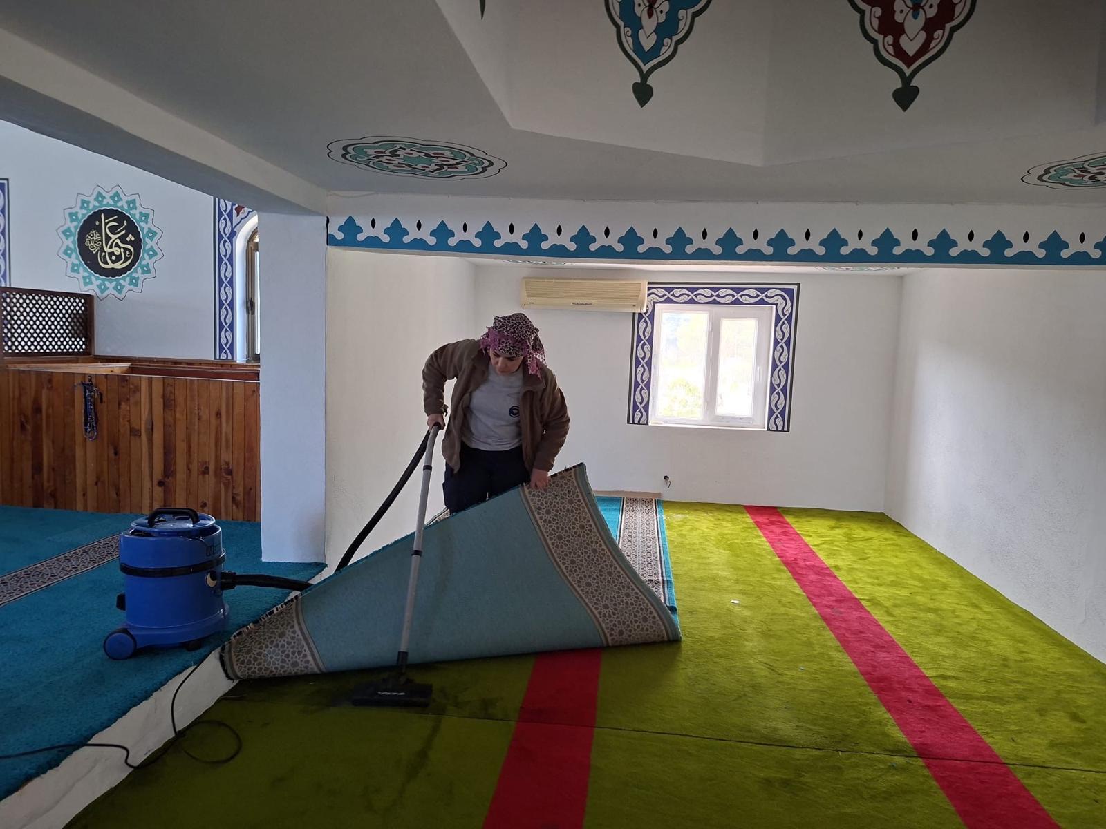 Kemer İlçe Müftülüğü'nün belirlediği 32 camide temizlik çalışmalarına başlayan belediye ekipleri, Ramazan ayı öncesi vatandaşların ibadetlerini daha temiz bir ortamda eda edebilmesi için cami içindeki halıları süpürerek, cami bahçelerinde bulunan çöpleri temizliyor.