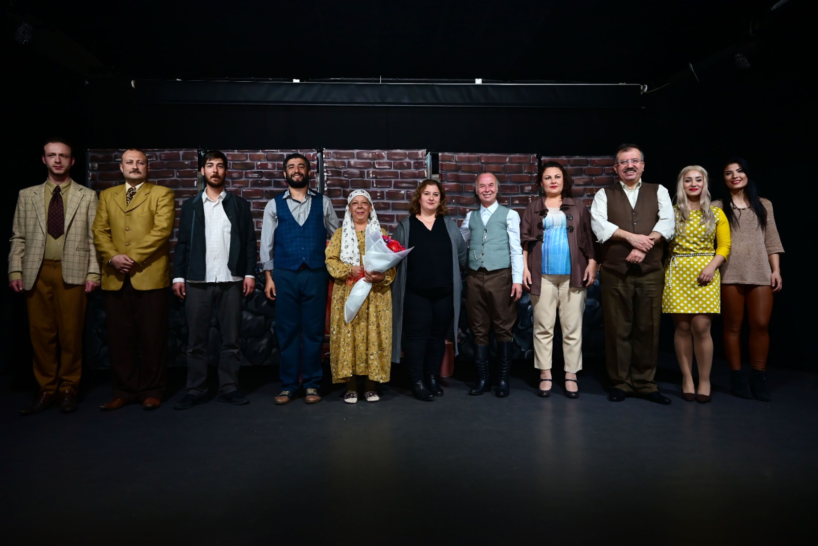Tiyatronun sonunda, Kültür ve Sosyal İşler Müdürlüğü personeli Birsen Akan tiyatro ekibine çiçek vererek hatıra fotoğrafı çektirdi.
