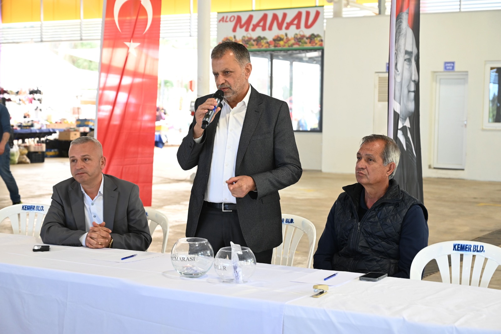Kura çekimine, Kemer Belediye Meclis Üyeleri Mustafa Bilici ile Mustafa Çelik, Kemer Belediye Tekirova Mahalle Sorumlusu Recep Yılmaz, Kemer Belediye Zabıta Müdürü Erhan Kurtoğlu ve pazar esnafı katıldı.