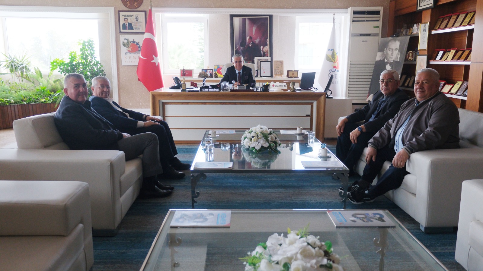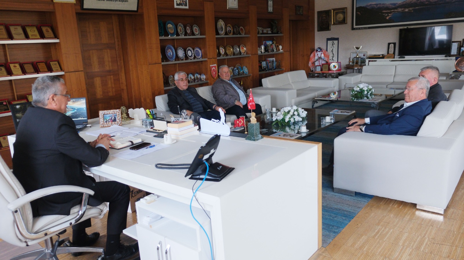 Kemer Ulaştırma Hizmetleri Esnaf ve Sanatkarlar Odası Başkanı Mustafa Tıraş ve yönetim kurulu üyeleri, Kemer Belediye Başkanı Necati Topaloğlu'na makamında nezaket ziyaretinde bulundu.
