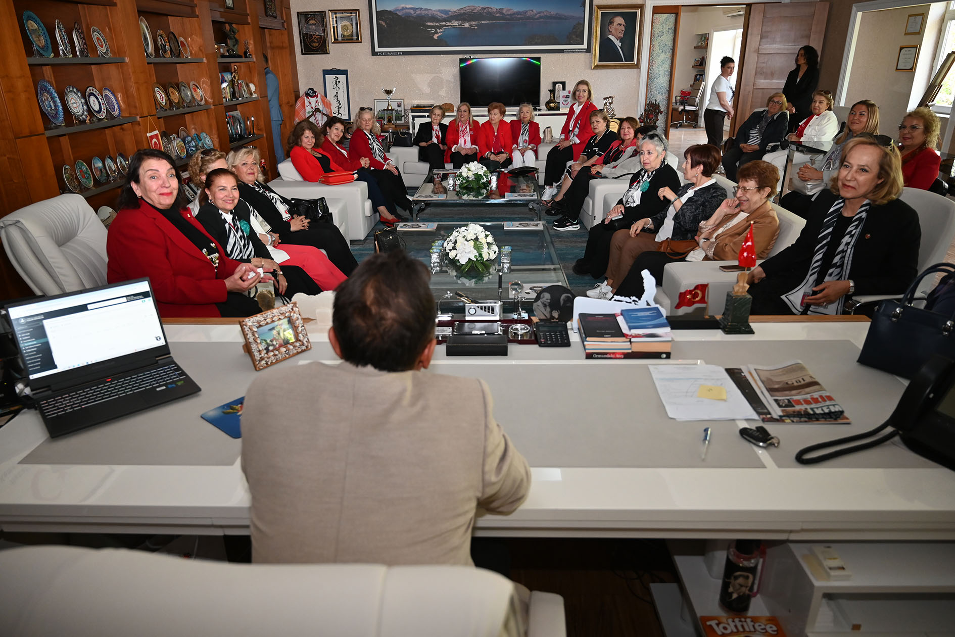 Türk Kadınlar Birliği (TKB) Genel Başkanı Sema Kendirci Uğurman ve Türkiye'nin çeşitli illerinden gelen şube başkanları, TKB'nin kuruluş yıl dönümü etkinlikleri kapsamında Kemer Belediye Başkan Vekili Hüseyin Çelik'i ziyaret etti.