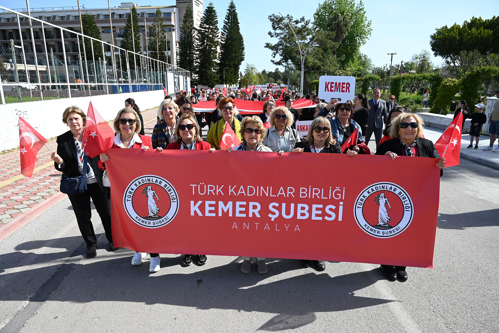 Kemer Belediye Başkan Yardımcısı ve aynı zamanda Kemer Belediyesi Gençlik Orkestrası Şefi Furkan Üstündağ yönetimindeki Kemer Belediyesi Gençlik Orkestrası eşliğinde yapılan kortej yürüyüşüne, TKB Genel Başkanı Sema Kendirci Uğurman, Kemer Belediye Başkanı Necati Topaloğlu'nun eşi Fikriye Topaloğlu, Kemer Belediye Başkan Yardımcısı Semih Top, Kemer Belediyesi Meclis Üyesi Sema Özdemir, Kemer Belediyesi Sağlık İşleri Müdürlüğü Sorumlusu Arzu Erkan, CHP Kemer Kadın Kolları Başkanı Ayşegül Çelebi, TKB Kemer Şube Başkanı Hacer Akdağ ve Türkiye'nin farklı illerinden gelen şube başkanları ile muhtarlar katıldı.