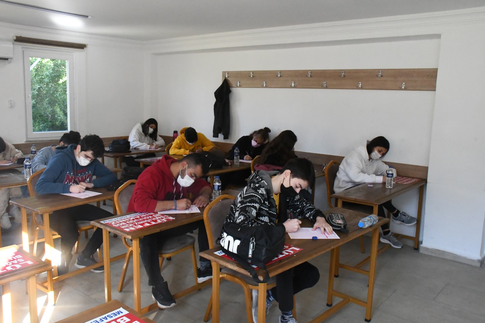 Üniversiteye hazırlanan öğrenciler, Kemer Belediyesi Ahmet Erkal Destek Eğitim Kurs Merkezinde deneme sınavına tabi tutuldu.